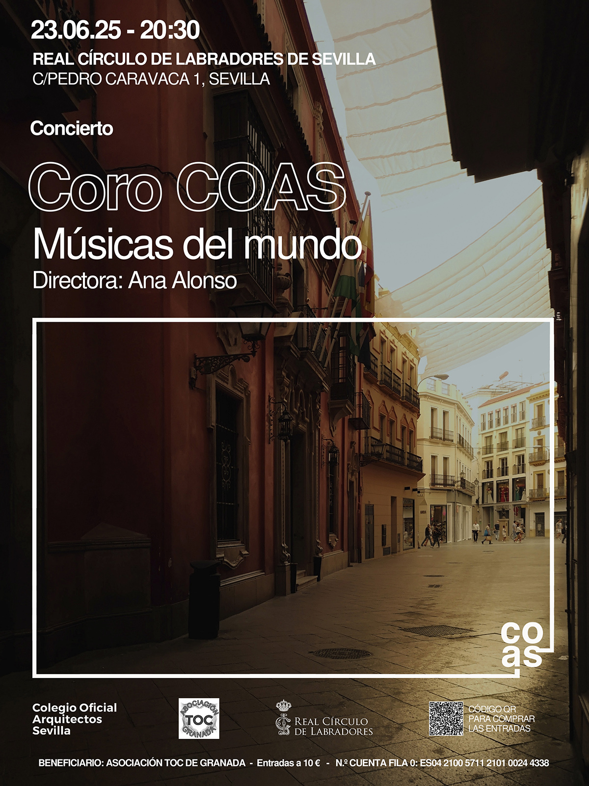El Coro del COASdirigido por Ana Alonso, ofrecerá un concierto solidario el próximo lunes 23 de junio, a las 20:30 h., en el Real Club Labradores de Sevilla (c/ Pedro Caravaca, 1, Sevilla).