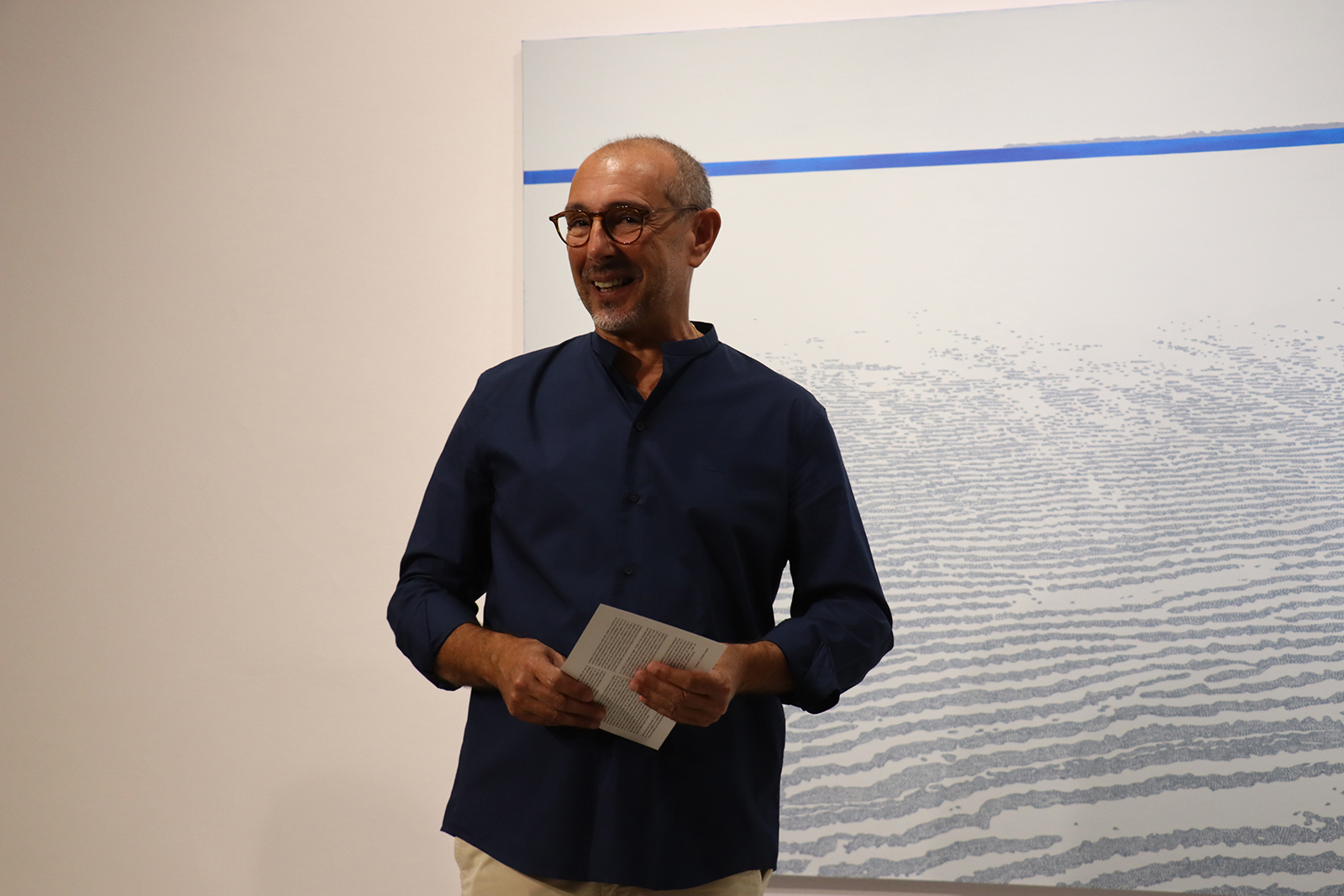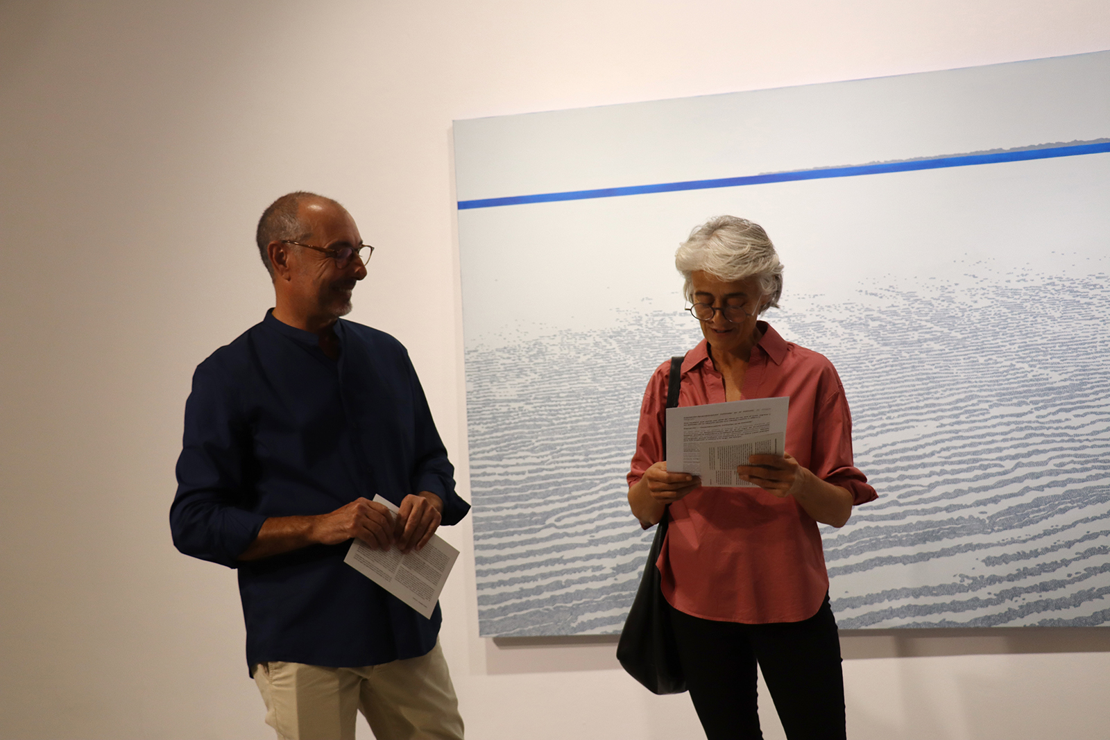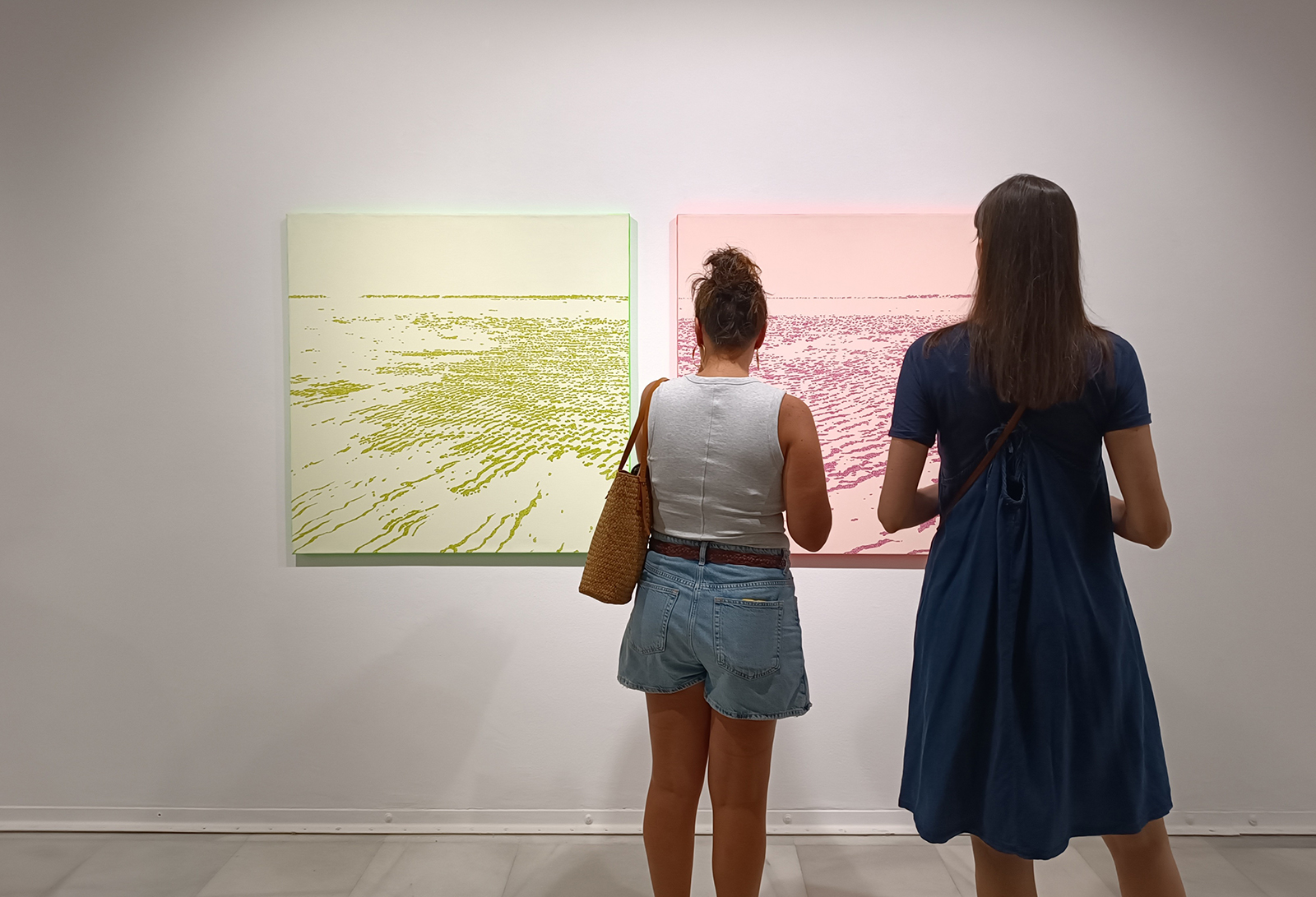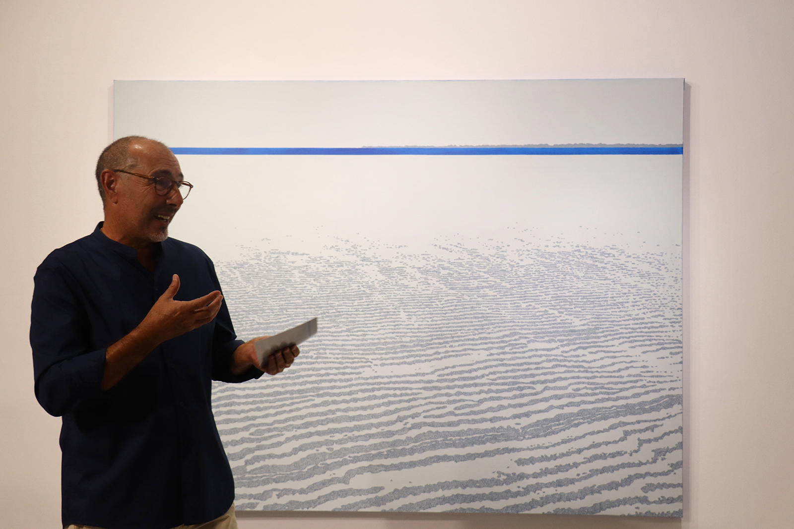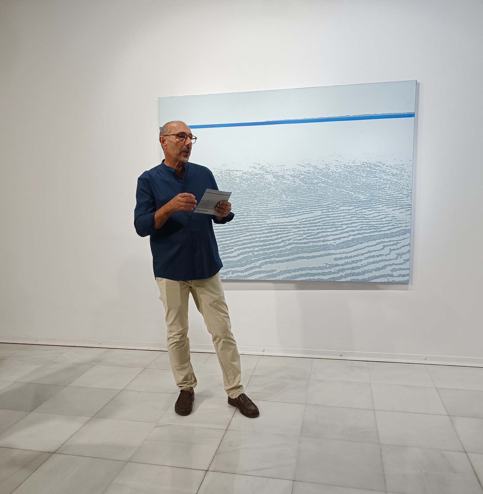 Mis primeros encuentros con la pintura fueron necesariamente con el terruño; ahora desde una postura más madura y reflexiva vuelvo a él. Son los mismos horizontes, pero examinados bajo la inflexión que dota la experiencia. Las bandas de color que se acercan a la abstracción recuerdan a las masas de aguas oceánicas y al litoral de Cádiz en distintas horas del día.