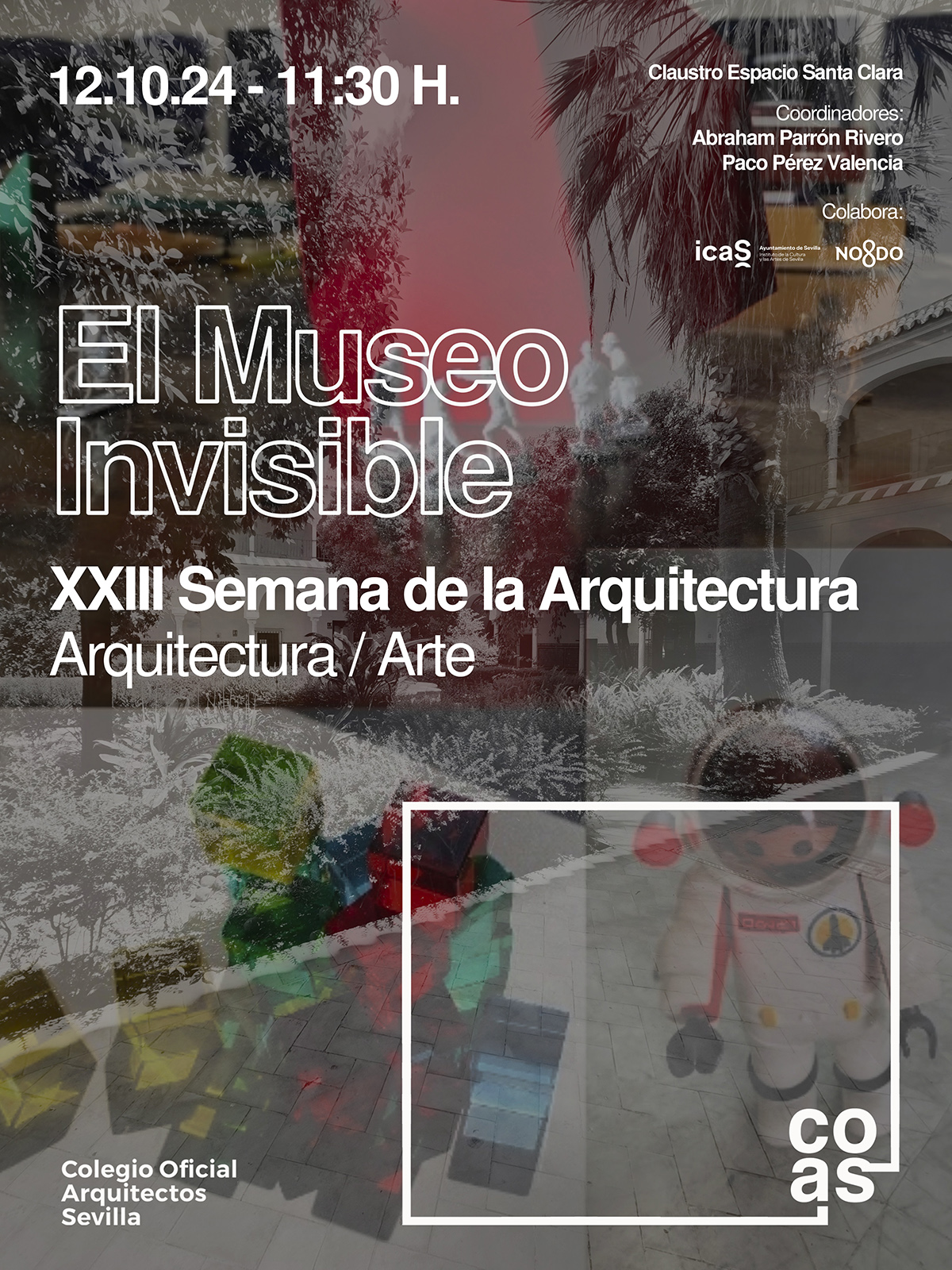 Como novedad, este año la programación de la XXIII Semana de la Arquitectura incluye el proyecto de museografía “El Museo Invisible” que, coordinado por Abraham Parrón y Paco Pérez Valencia, tendrá lugar el sábado 12 de octubre, a las 11:30 horas, en el patio del Convento de Santa Clara (C/Becas s/n, Sevilla). Un proyecto de museografía radical nacido en 2016, que pretende reflexionar y ofrecer una nueva visión del museo como espacio emocional ligado a la sociedad que le rodea. Como cualquier museo, tiene una programación de exposiciones, en las que se muestran objetos, historias. Como cualquier museo, lo más importante aquí es precisamente eso, los objetos que se muestran.