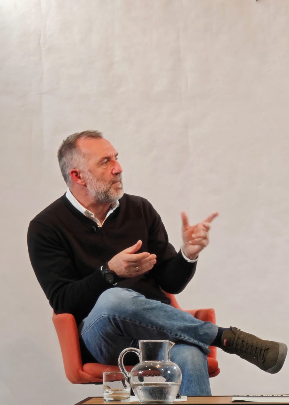 Paco Pérez Valencia, artista (1969). Sarajevo marcó su carrera artística. Todo cambió para él. Desde 1992 su paleta cromática se hace negra, sus temas se vuelcan en el dolor, el daño, el desarraigo, los refugiados, la muerte. Es profesor de la Universidad Loyola, donde insta a sus jóvenes estudiantes a darlo todo por mejorar el mundo. Tiene obra en algunas de las colecciones públicas más importantes de este país. Nombrado Académico de Número por la Real Academia de Bellas Artes de Cádiz, 2024.