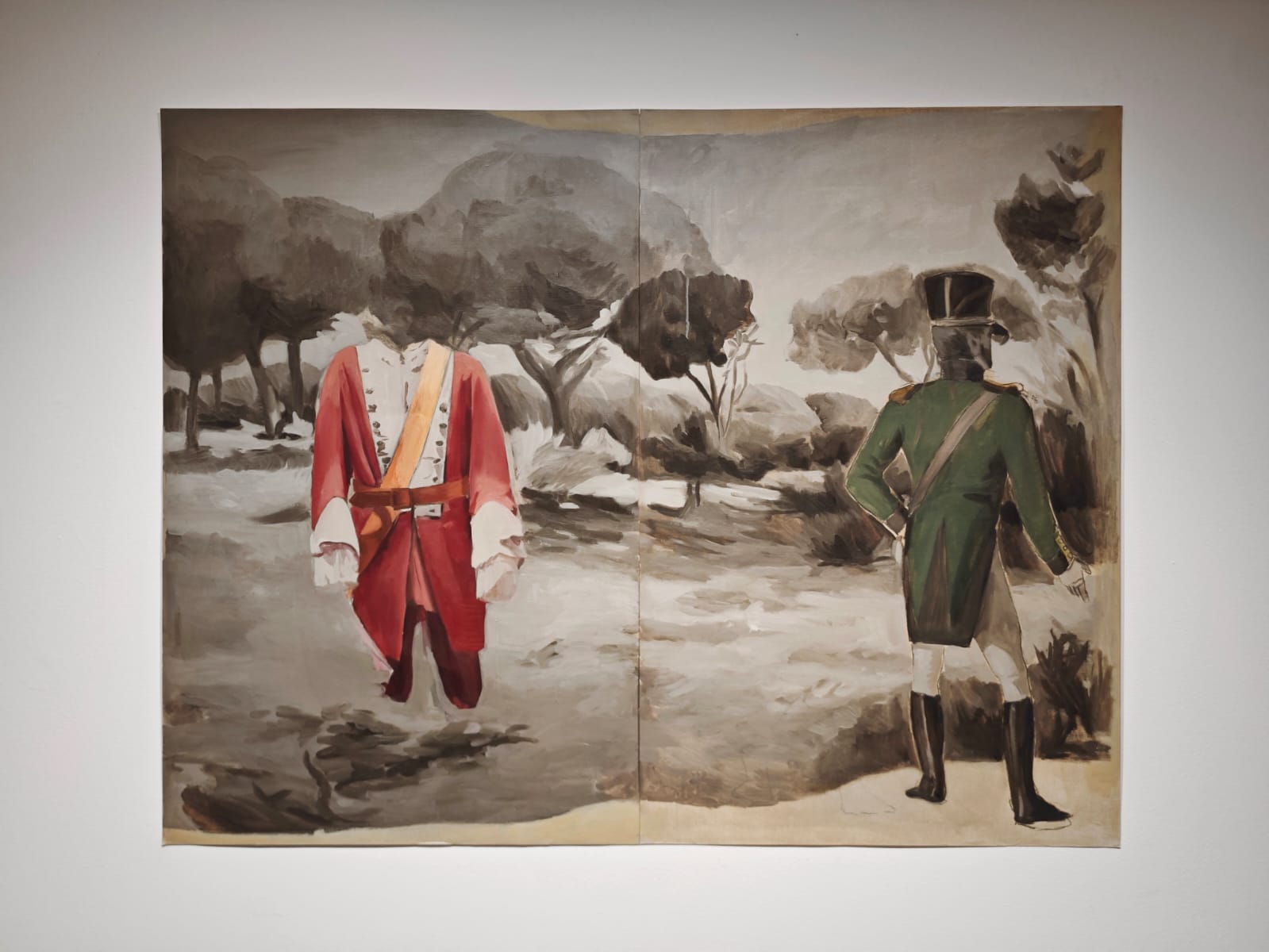 al cuadro del hotel, presentan uniformes del siglo XVIII sin cabeza, evocando