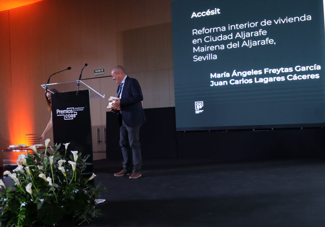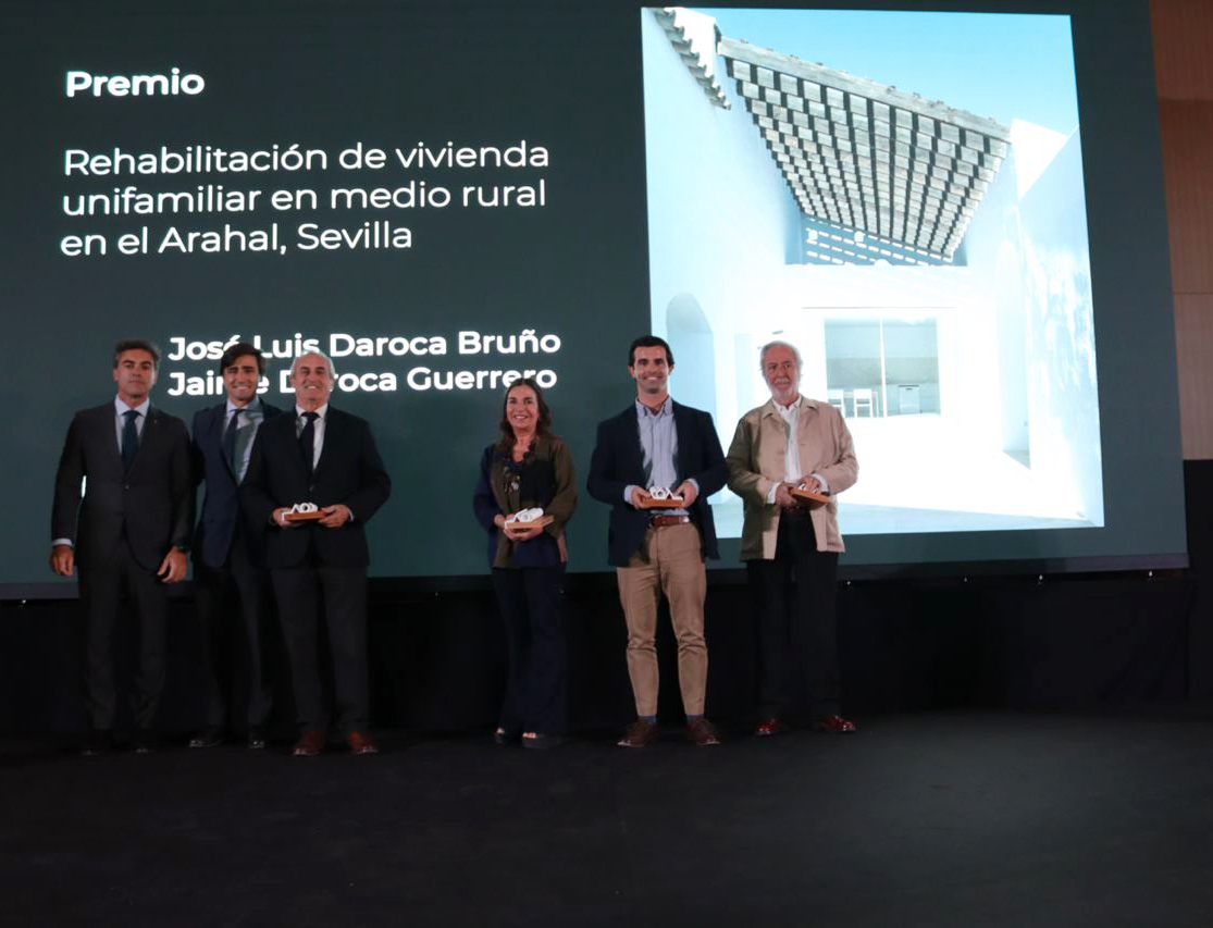 José Manuel Flores, presidente del Colegio Oficial de Aparejadores y Arquitectos Técnicos de Sevilla, fue el encargado de otorgar el premio Arquitectura y pre-existencia - Uso residencial a la “Rehabilitación de vivienda unifamiliar en medio rural en el Arahal (Sevilla)” de José Luis Daroca Bruño y Jaime Daroca Guerrero y el accésit de dicha categoría a la “Casa Viéndolas venir (Sevilla)” de José Morales Sánchez y Sara María Giles Dubois.