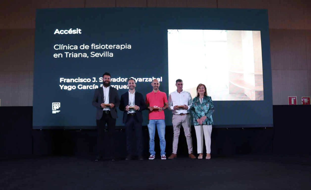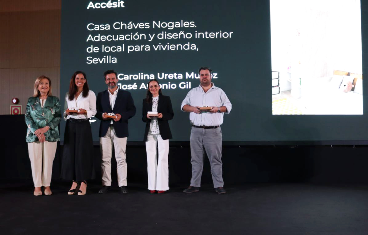 A continuación, Carmen Núñez, presidenta del Foro GAESCO, entregó los tres accésits en la categoría Diseño Arquitectónico y Arquitectura efímera. Por un lado, a la “Casa Chaves Nogales. Adecuación y diseño interior de local para vivienda en Sevilla” de Carolina Ureta Muñoz y José Antonio Gil Hernández; por otra parte, a la “Reforma interior de vivienda en Ciudad Aljarafe en Mairena del Aljarafe (Sevilla)” de María Ángeles Freytas García y Juan Carlos Lagares Cáceres y, además, a la “Clínica de fisioterapia en Triana (Sevilla)” de Francisco J. Salvador Oyarzabal y Yago García Blázquez.