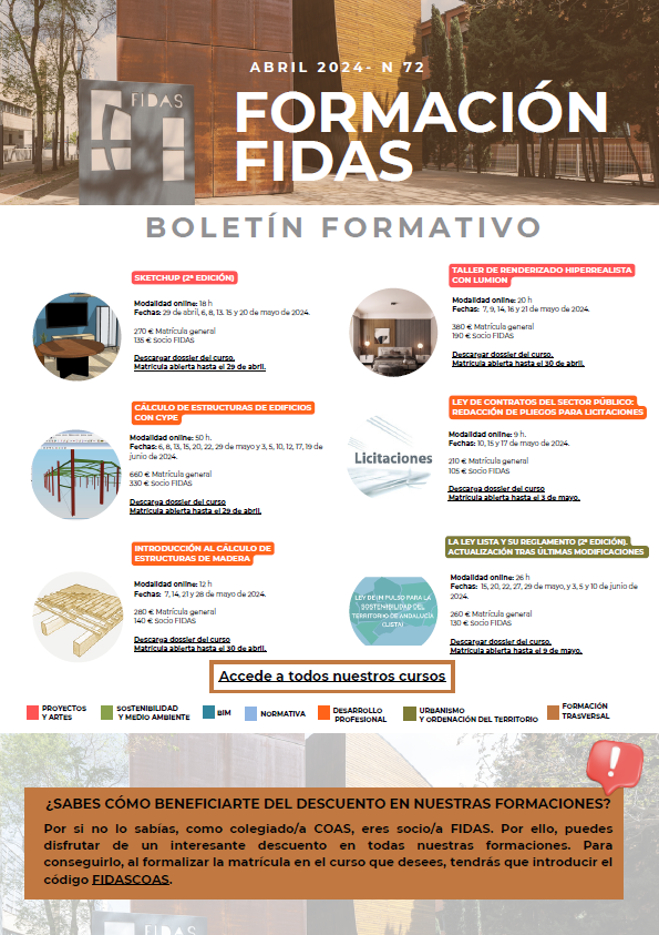 El  plan formativo del COAS  impulsado por la  Fundación FIDAS   y con el   patrocinio de ASEMAS , cuenta con un  amplio y completo catálogo de cursos  adaptado a la actualidad del sector, que tiene el objetivo de  impulsar la empleabilidad de los arquitectos y arquitectas , así como mejorar su cualificación profesional.