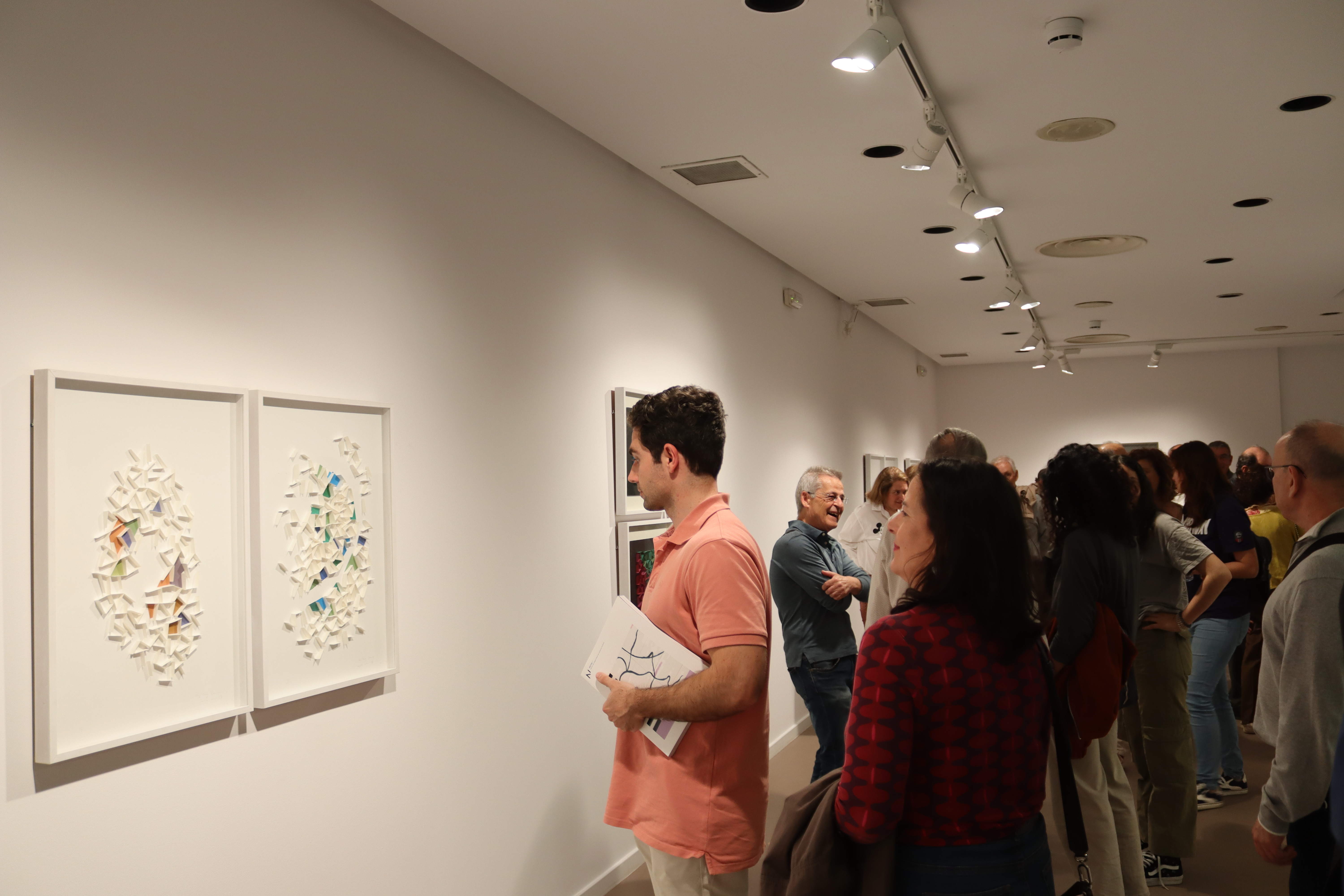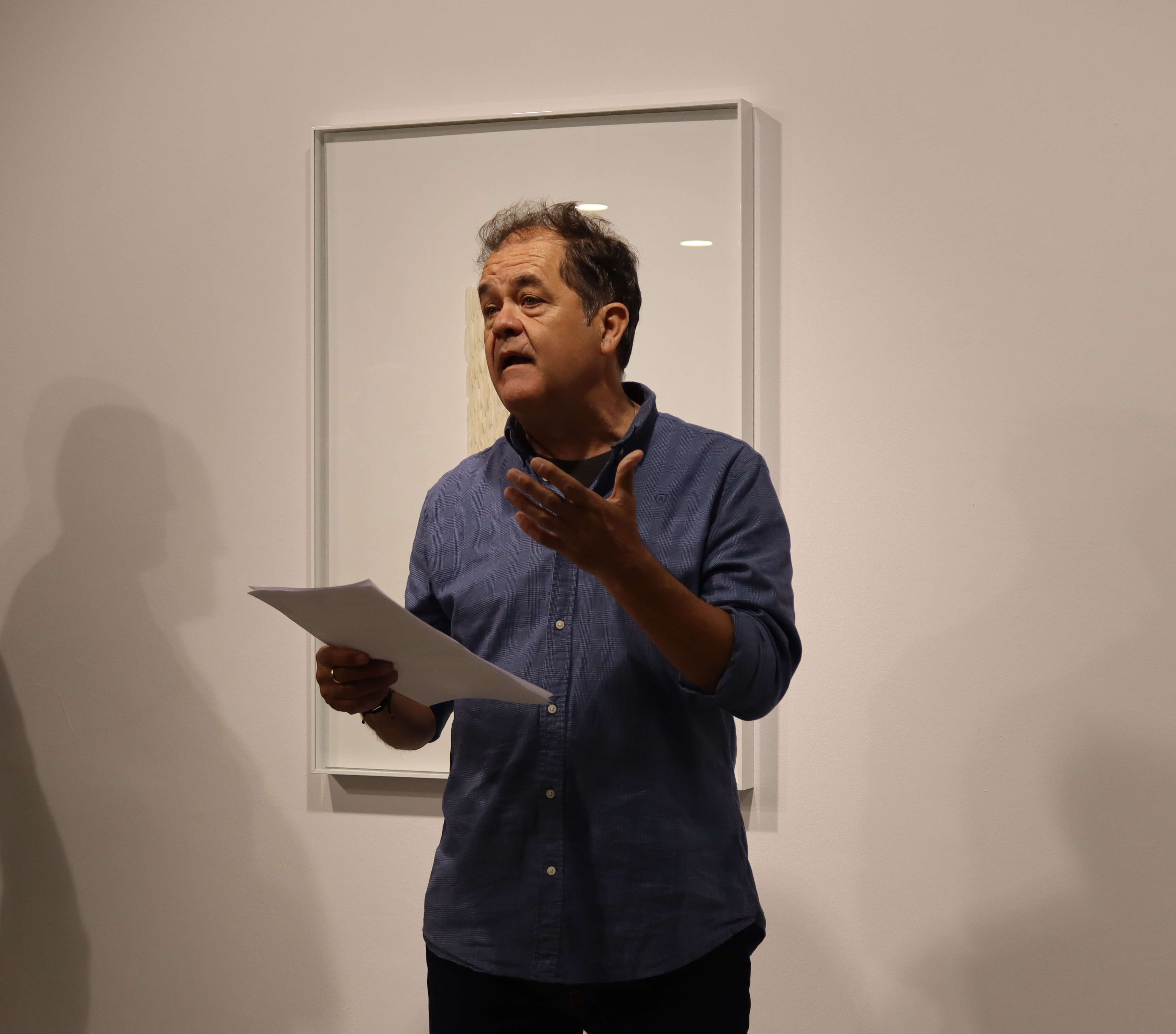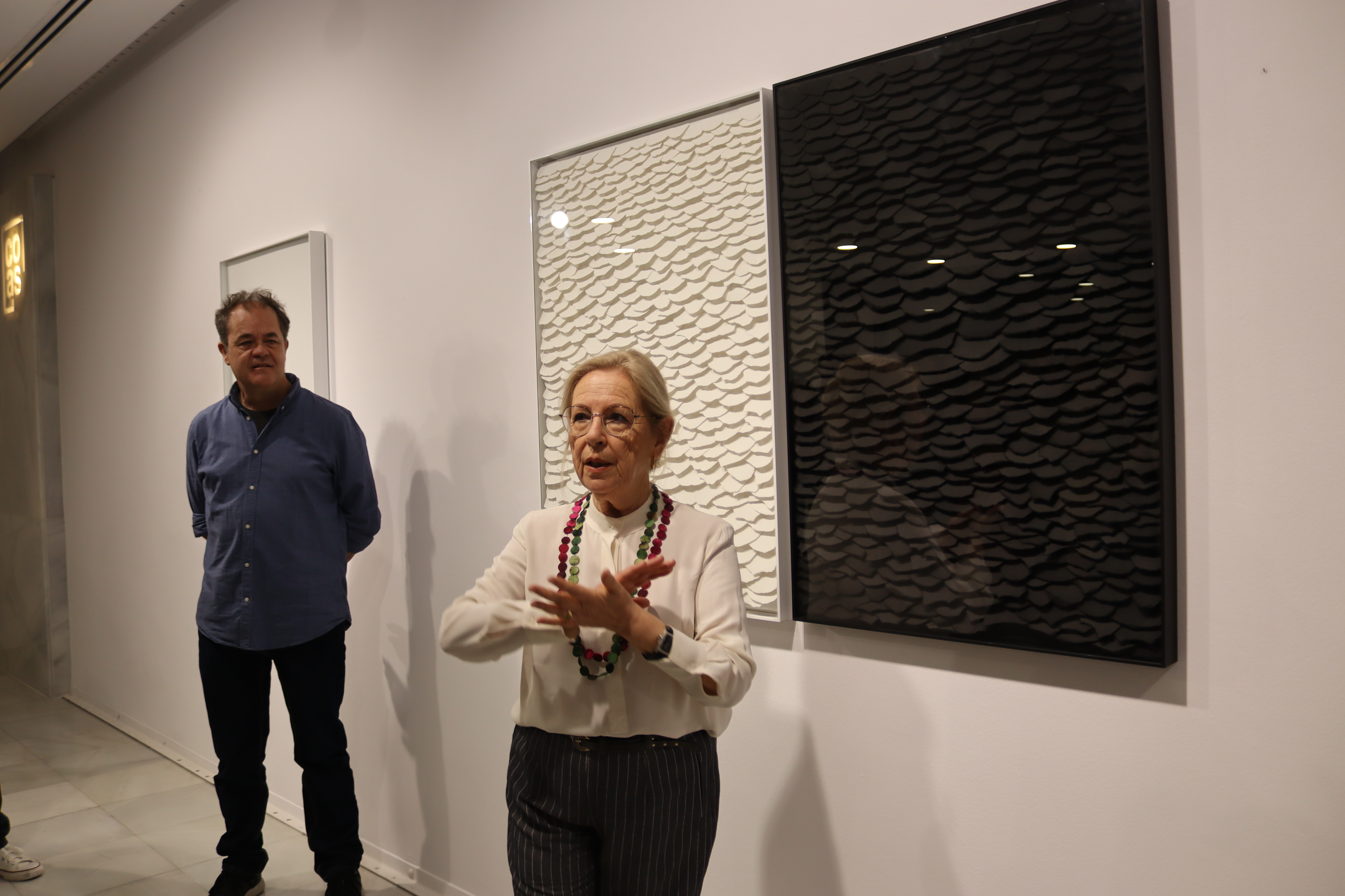 Juanma García Nieto, vocal de Actividades del COAS, fue el encargado de dar la bienvenida a los asistentes y destacó que “si hay algo que caracteriza a la obra de Paz es su delicadeza. En mi opinión, es de las artistas más delicadas y exquisitas que tenemos en Sevilla. Es un reflejo de ella, ella es así. Cómo maneja la luz, con que sutileza utiliza estos materiales tan aparentemente sencillos para conseguir prácticamente hacer la luz sólida. Hay mucho de arquitectura en el fondo de su obra. Está la geometría, la naturaleza y un juego de luces permanente y que los arquitectos entendemos muy bien. Por eso, el placer de acoger esta exposición es doble”.