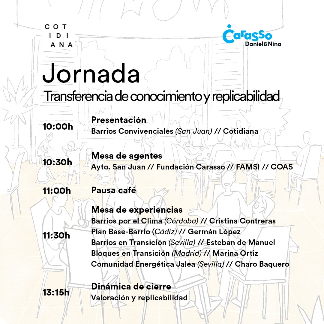 Organizada por la cooperativa de arquitectura Cotidiana y la Fundación Daniel y Nina Carasso, la jornada de transferencia de conocimiento y replicabilidad “Barrios convivenciales ante la emergencia climática y social" tendrá lugar el próximo miércoles 12 de junio en el Palacio de los Marqueses de la Algaba (Plaza Calderón de la Barca s/n Sevilla), a las 10 h.