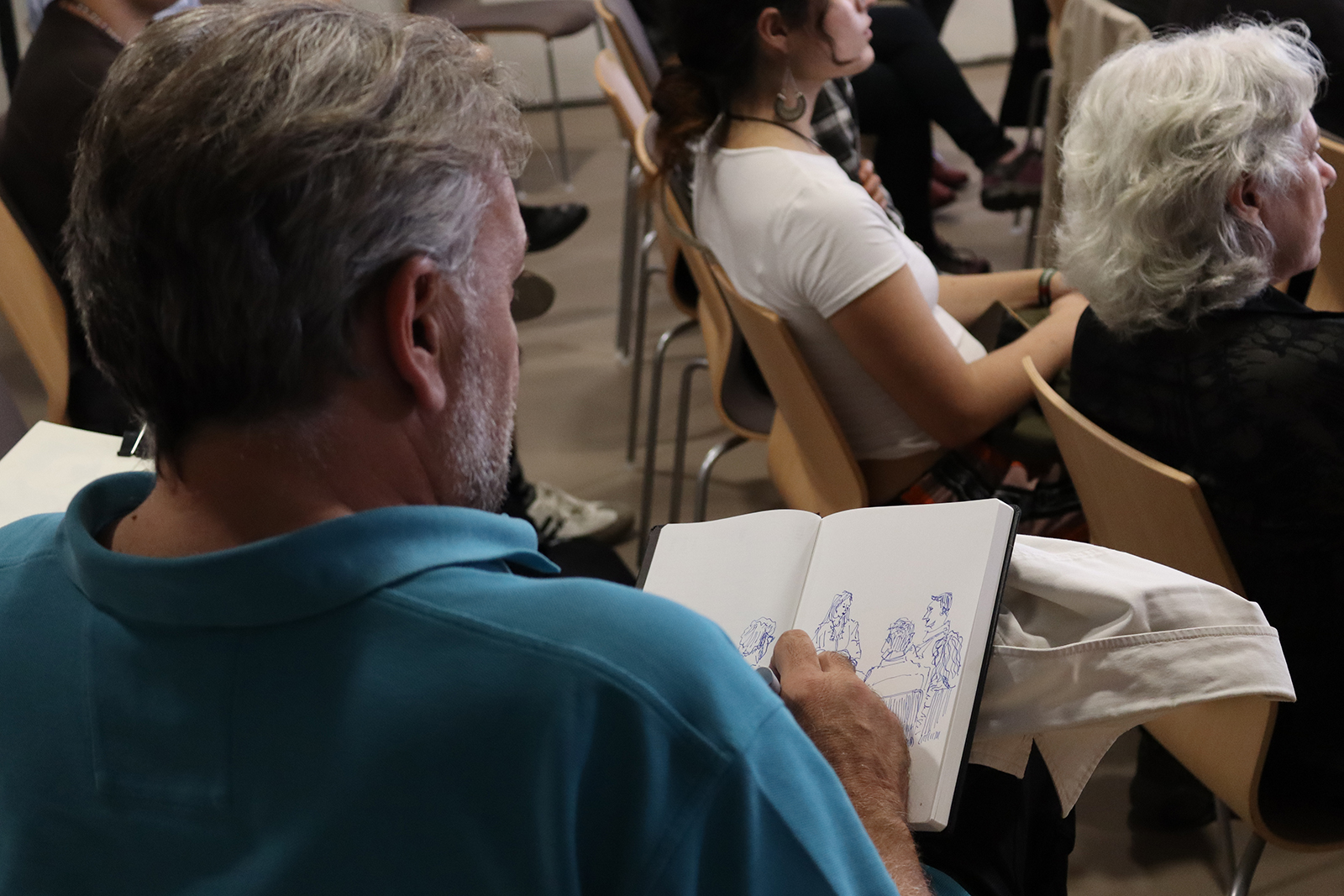 El jueves 10 de octubre tuvieron lugar tres conversatorios. El primero de ellos, bajo el título “Rastro”, contó con el artista Manuel M. Romero y el arquitecto y artista visual Jorge Yeregui. Un diálogo en el que se habló del concepto de rastro, "una palabra sencilla que define nuestro trabajo, nuestra búsqueda. Cómo utilizamos cada uno los rastros".