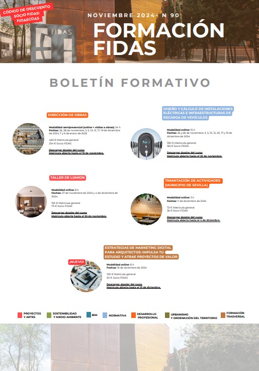 Los títulos con plazo abierto de matriculación son los siguientes: Dirección de obrasTaller avanzado de LumionDiseño y cálculo de instalaciones eléctricas e infraestructuras de recarga vehículos, Tramitación de actividades (municipio de Sevilla) y Estrategias de Marketing Digital para arquitectos: Impulsa tu estudio y atrae proyectos de valor