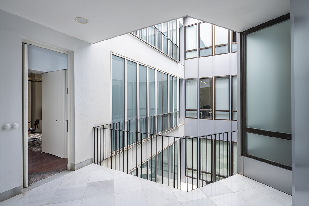 En planta conviven, adecuadamente diferenciadas, viviendas y oficinas: un caso extraordinario en los edificios protegidos del centro de la ciudad que supuso la modificación puntual de la ficha de catálogo. Se atendió especialmente a las viviendas, situándolas en fachada y, en consecuencia, contribuyendo a la revitalización del centro histórico malagueño de la primera década del siglo corriente.