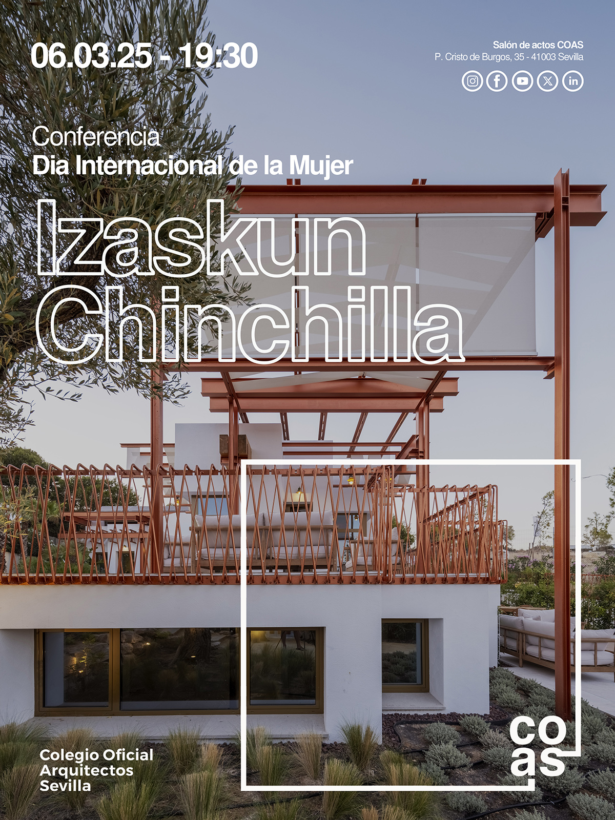 El próximo jueves 6 de marzo, a las 19.30 horas, tendrá lugar la conferencia de la arquitecta Izaskun Chinchilla, en el marco de las actividades por el Día Internacional de la Mujer y, sobre todo, desde el convencimiento de que necesitamos referentes femeninos en la arquitectura.