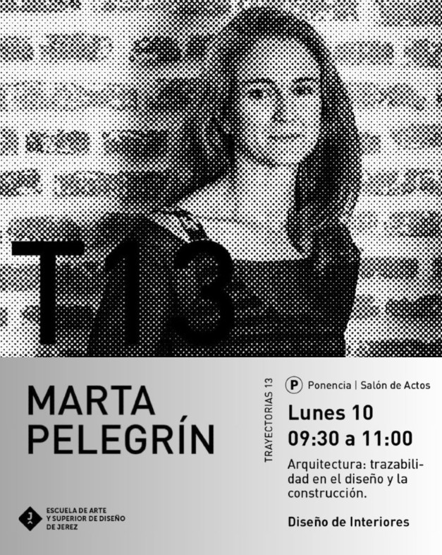 El próximo lunes 10 de marzo, a las 9:30 horas, la arquitecta Marta Pelegrín, cofundadora de MEDIOMUNDO arquitectos, intervendrá en la edición de este año de Trayectorias 13, un evento organizado por la Escuela de Arte de Jerez.