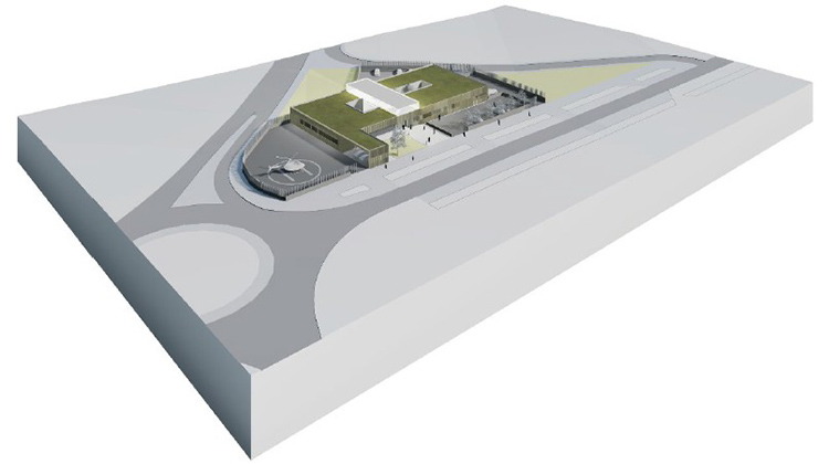 La propuesta cuenta con una piel metálica que la dotará de una imagen cambiante a lo largo del día, gracias a su resonancia con la luz solar y las condiciones meteorológicas. Además, el volumen principal se acentúa con un prisma superior de vidrio traslucido que durante la noche se ilumina, convirtiendo el edificio en un hito en el territorio al que prestará servicio.