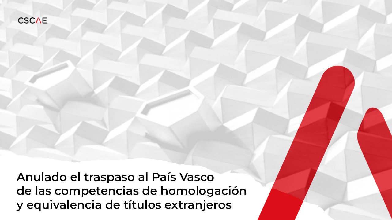 El Tribunal Supremo ha estimado el recurso del Consejo Superior de los Colegios de Arquitectos de España (CSCAE), anulando en su totalidad el Real Decreto 366/2024 del 9 de abril de ampliación de funciones y servicios traspasados a la Comunidad Autónoma del País Vasco por el Real Decreto 2808/1980, de 26 septiembre, en materia de enseñanza (homologación y declaración de equivalencia de títulos obtenidos en el marco de sistemas de educación superior extranjeros).