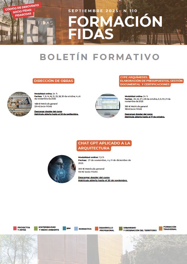 Los títulos con plazo abierto de matriculación son los siguientes: Dirección de obras, CYPE Arquímedes. Elaboración de presupuestos, gestión documental y certificaciones y Chat GPT aplicado a la arquitectura.