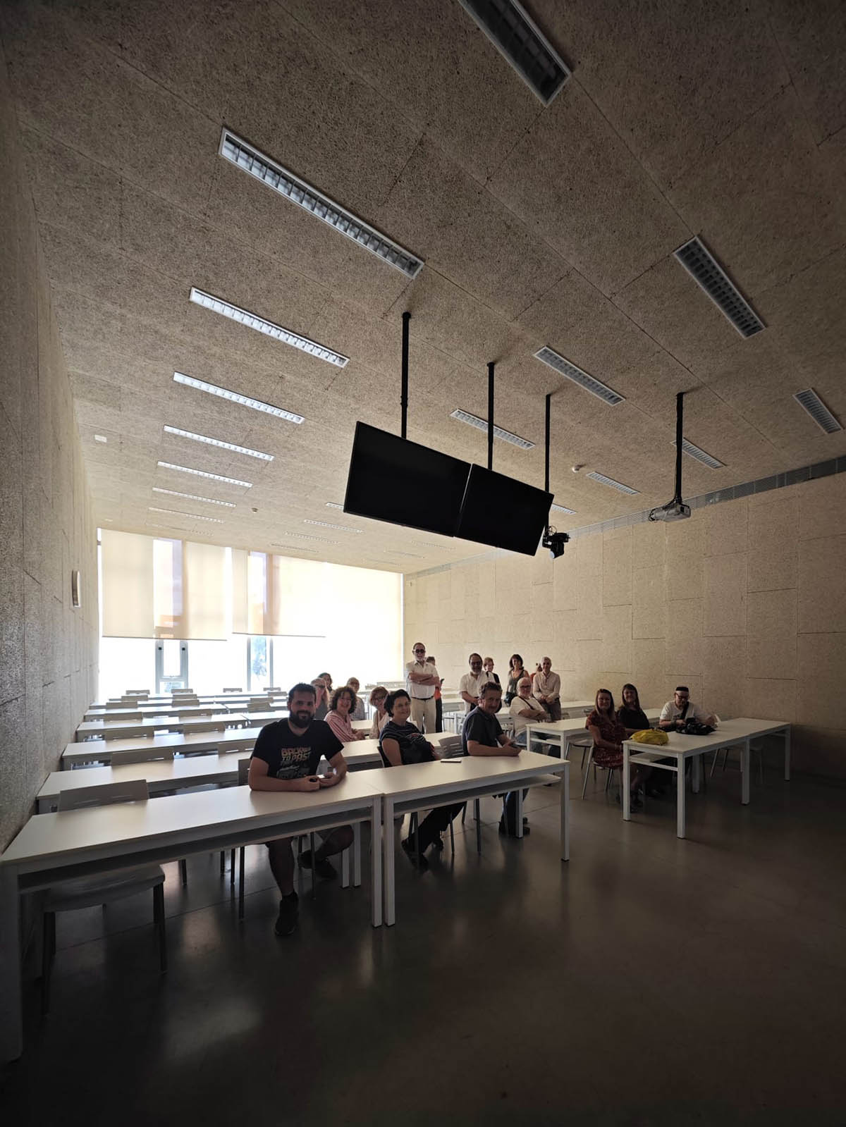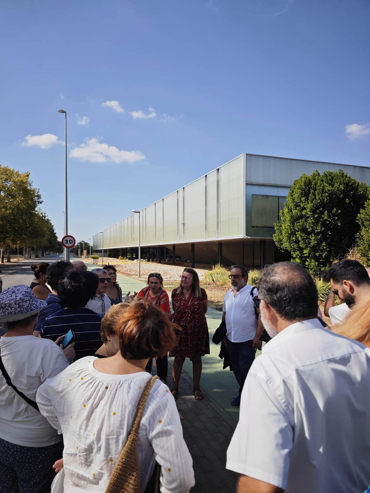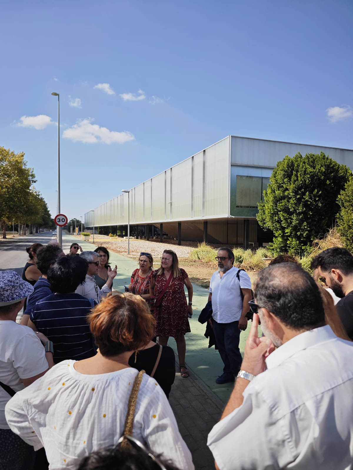 La visita ha comenzado en la Escuela Técnica Superior de Ingeniería Agronómica, obra de OTAISA, con ampliación de Estudio Carbajal, y ha continuado por los pabellones deportivos proyectados por OTAISA (Luis Gómez Estern, Alfonso Toro, Rodrigo y Felipe Medina Benjumea).