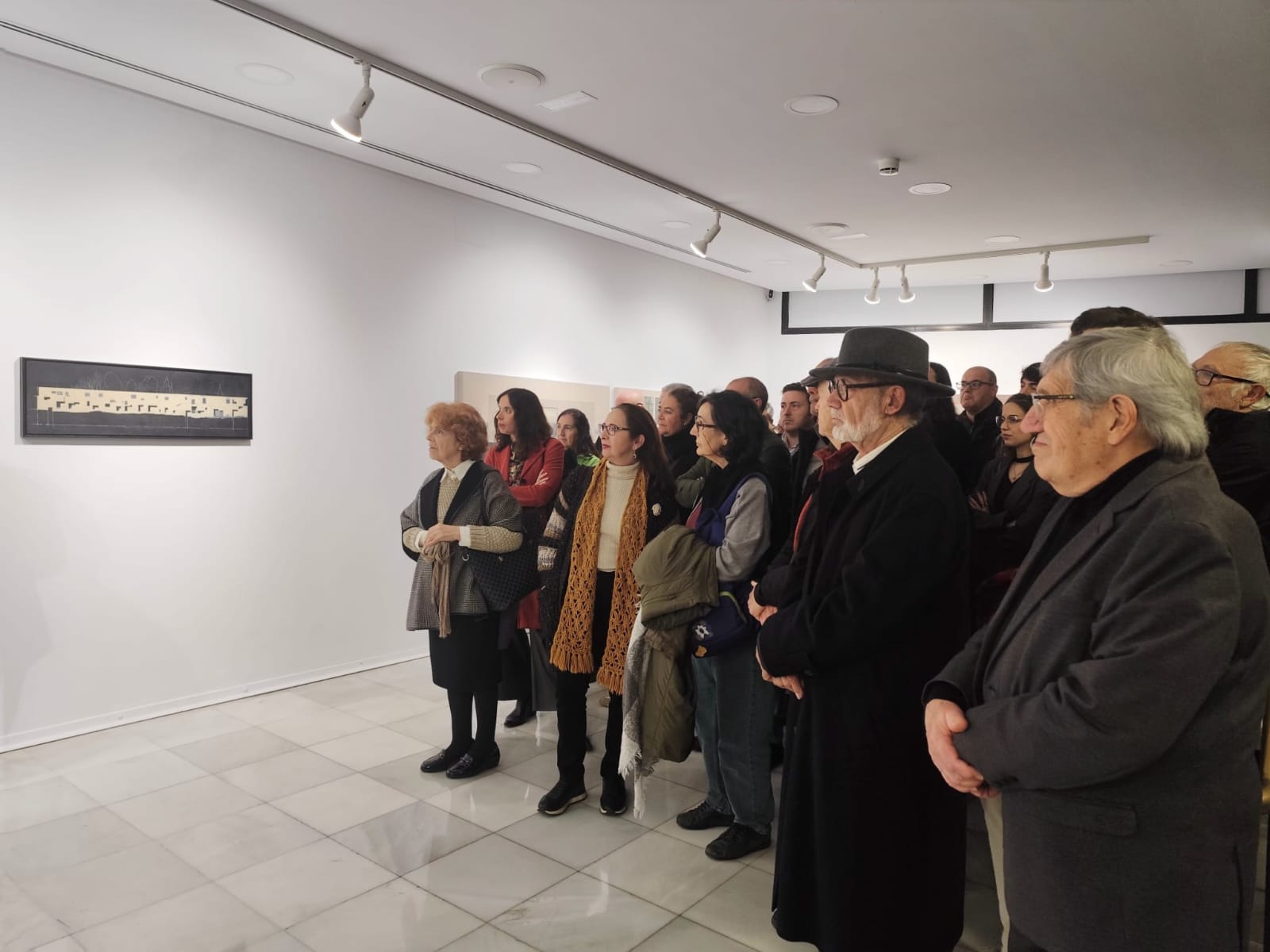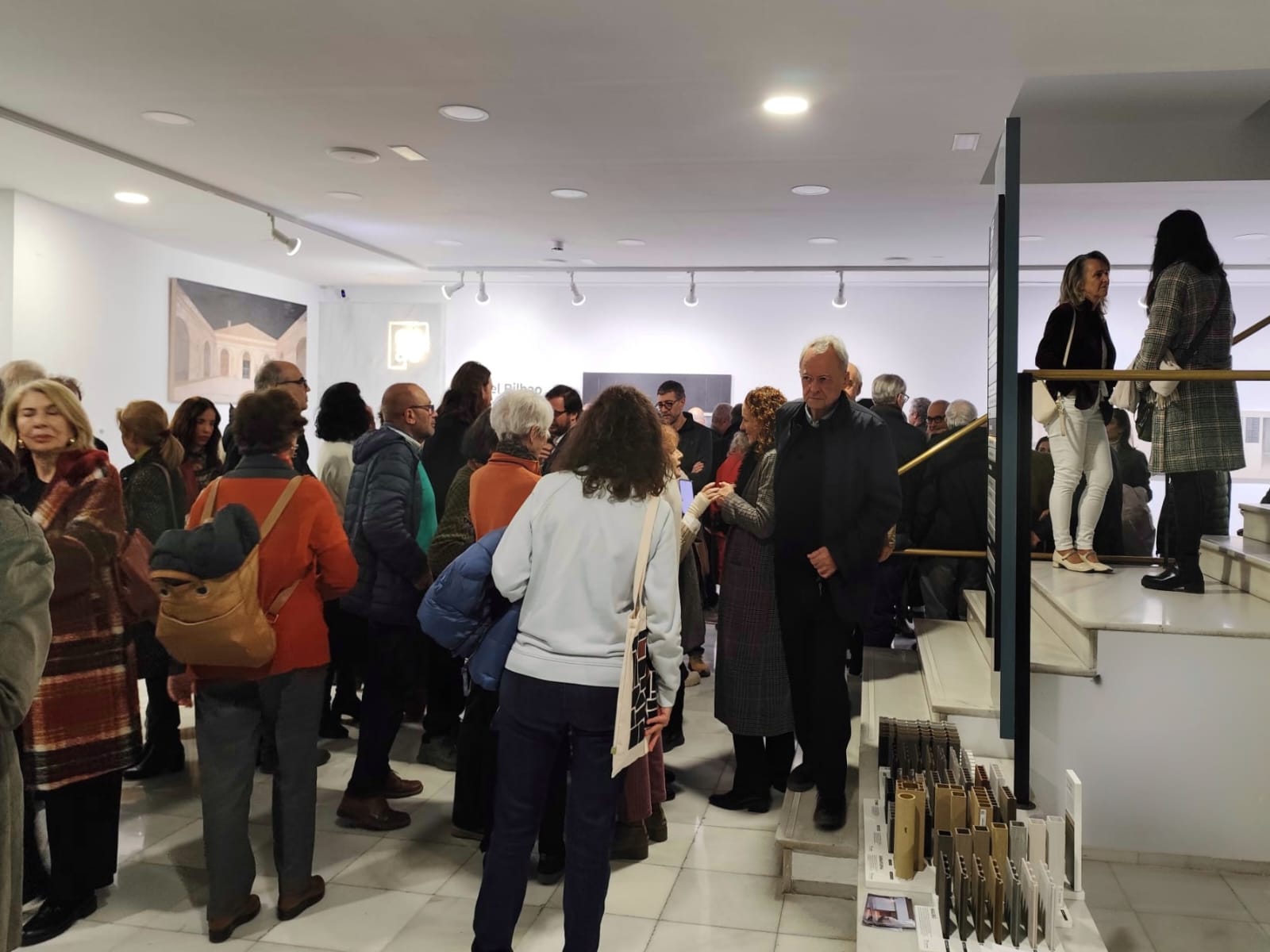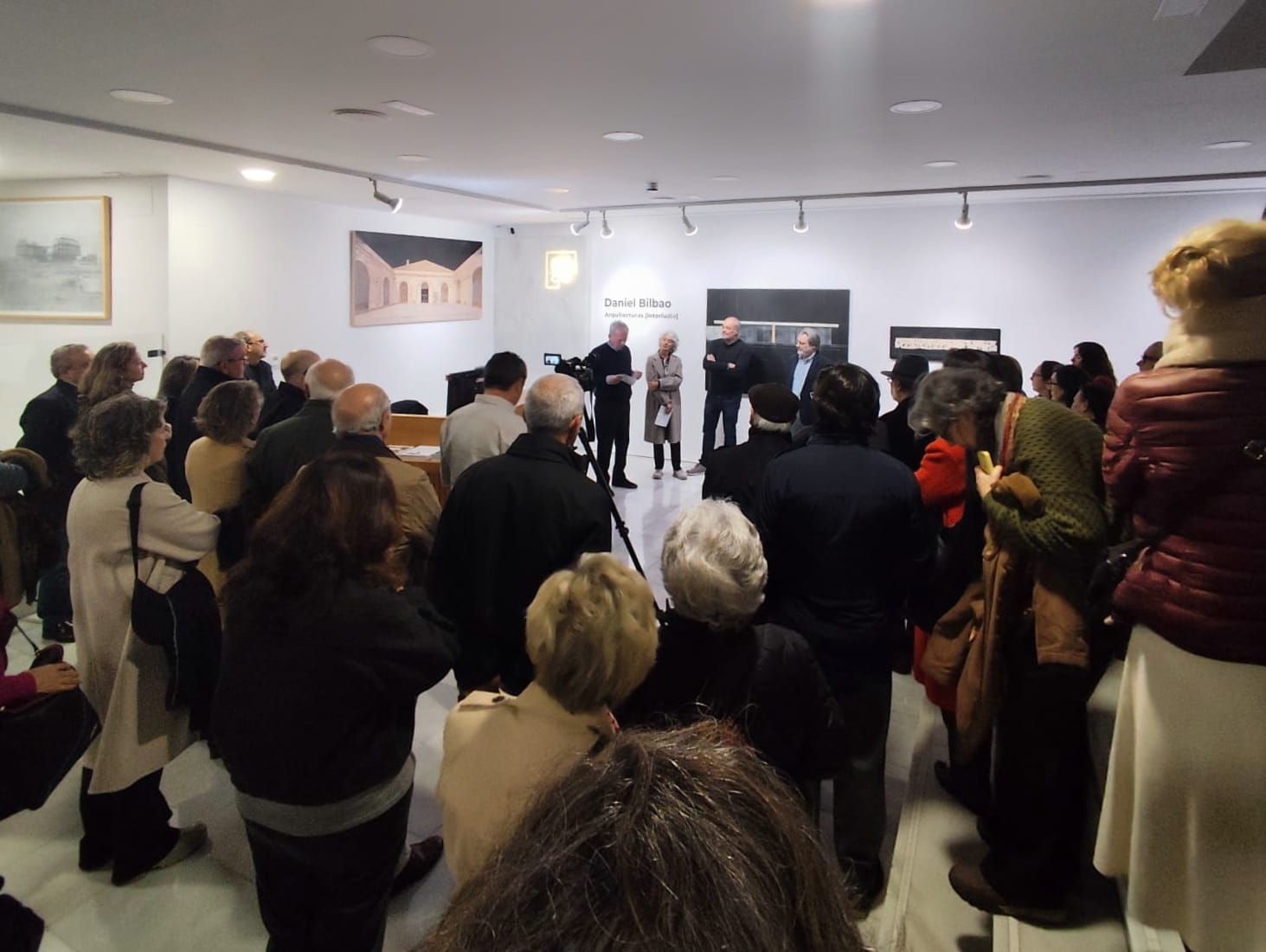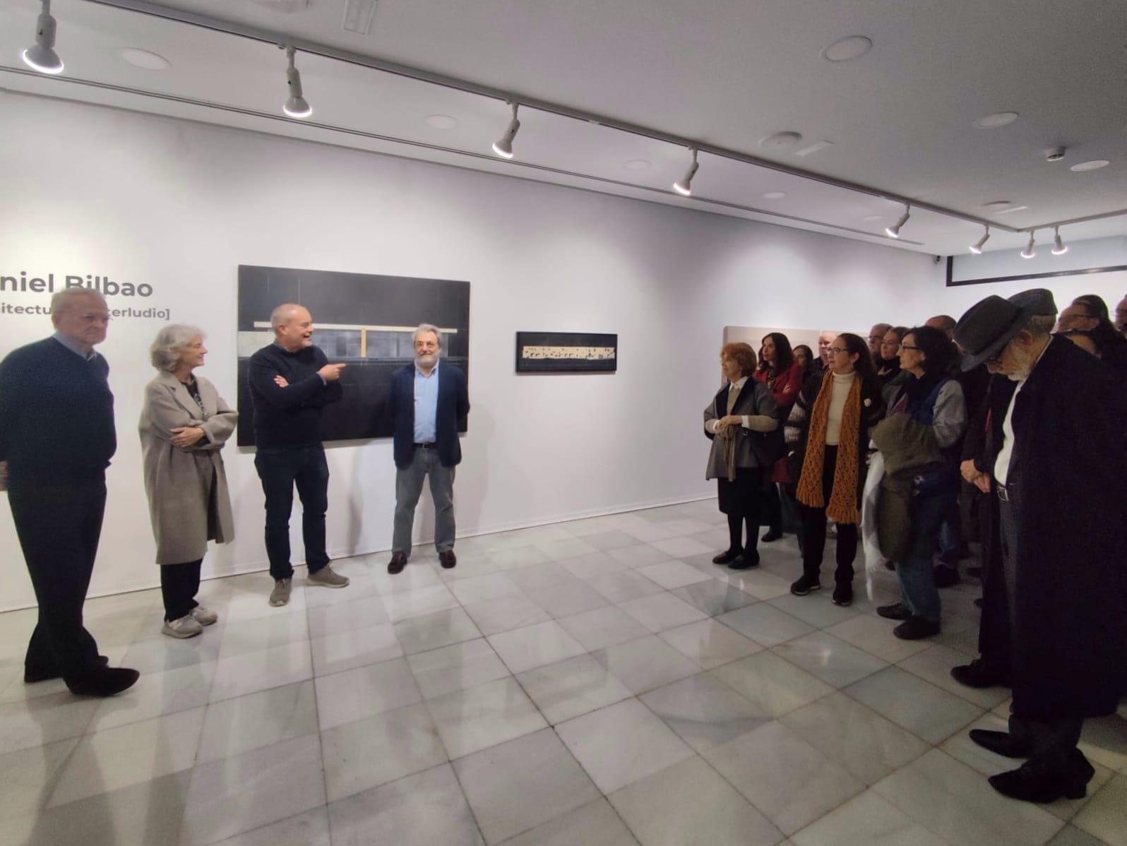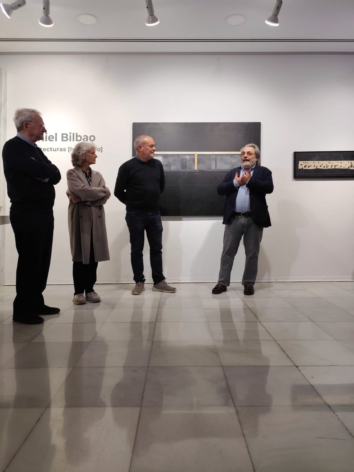 El acto de inauguración contó con la presencia del artista Daniel Bilbao y del comisario de la muestra, Juan Suárez, así como de Nuria Canivell, decana del COAS, y de Juanma García Nieto, coordinador de la exposición y vocal de Actividades.