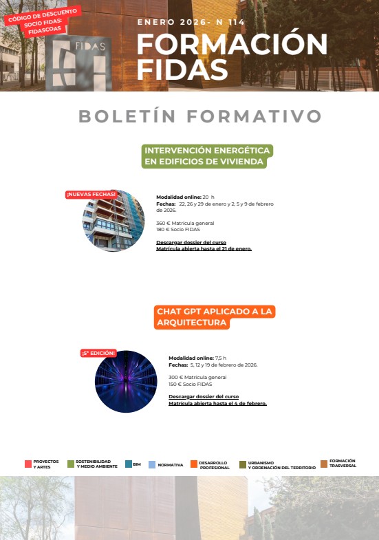 Los títulos con plazo abierto de matriculación son los siguientes: Curso de Intervención energética en edificios de vivienda y Chat GPT aplicado a la arquitectura.
