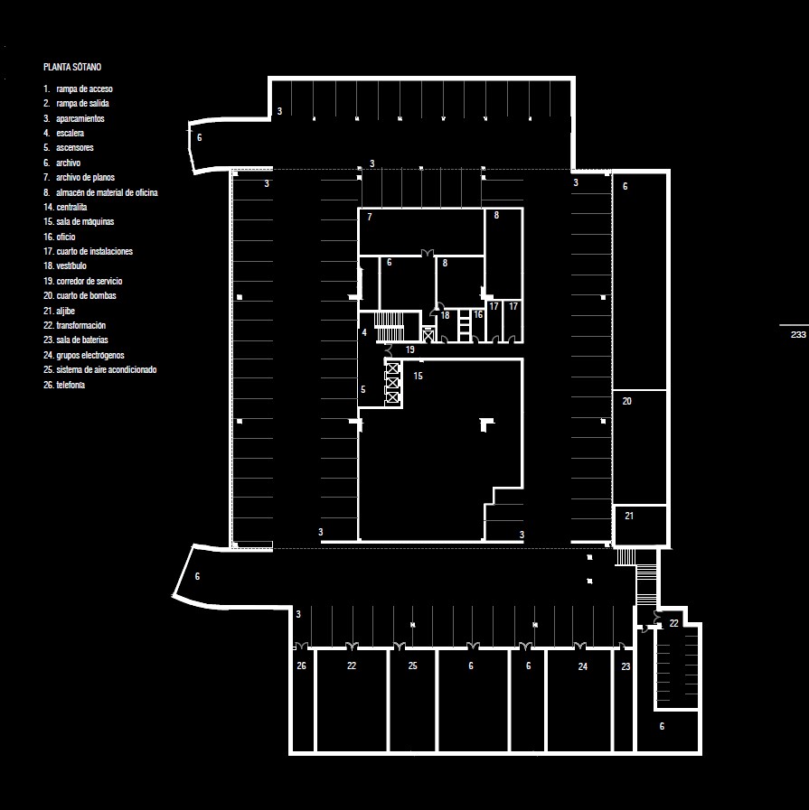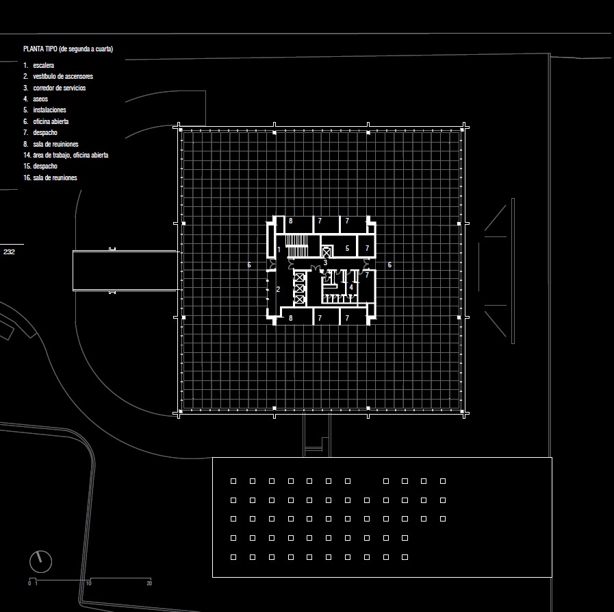 común. El volumen principal de cinco plantas de altura sobre rasante dedicado a