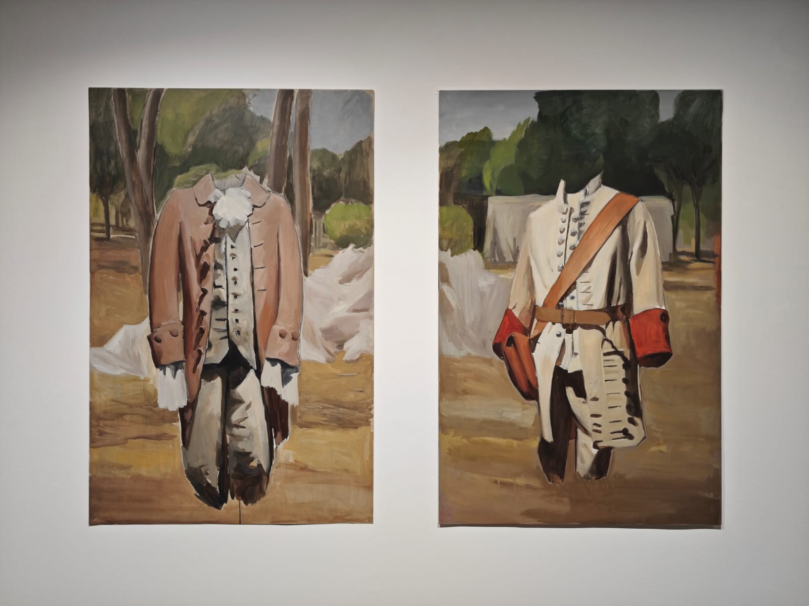 al cuadro del hotel, presentan uniformes del siglo XVIII sin cabeza, evocando