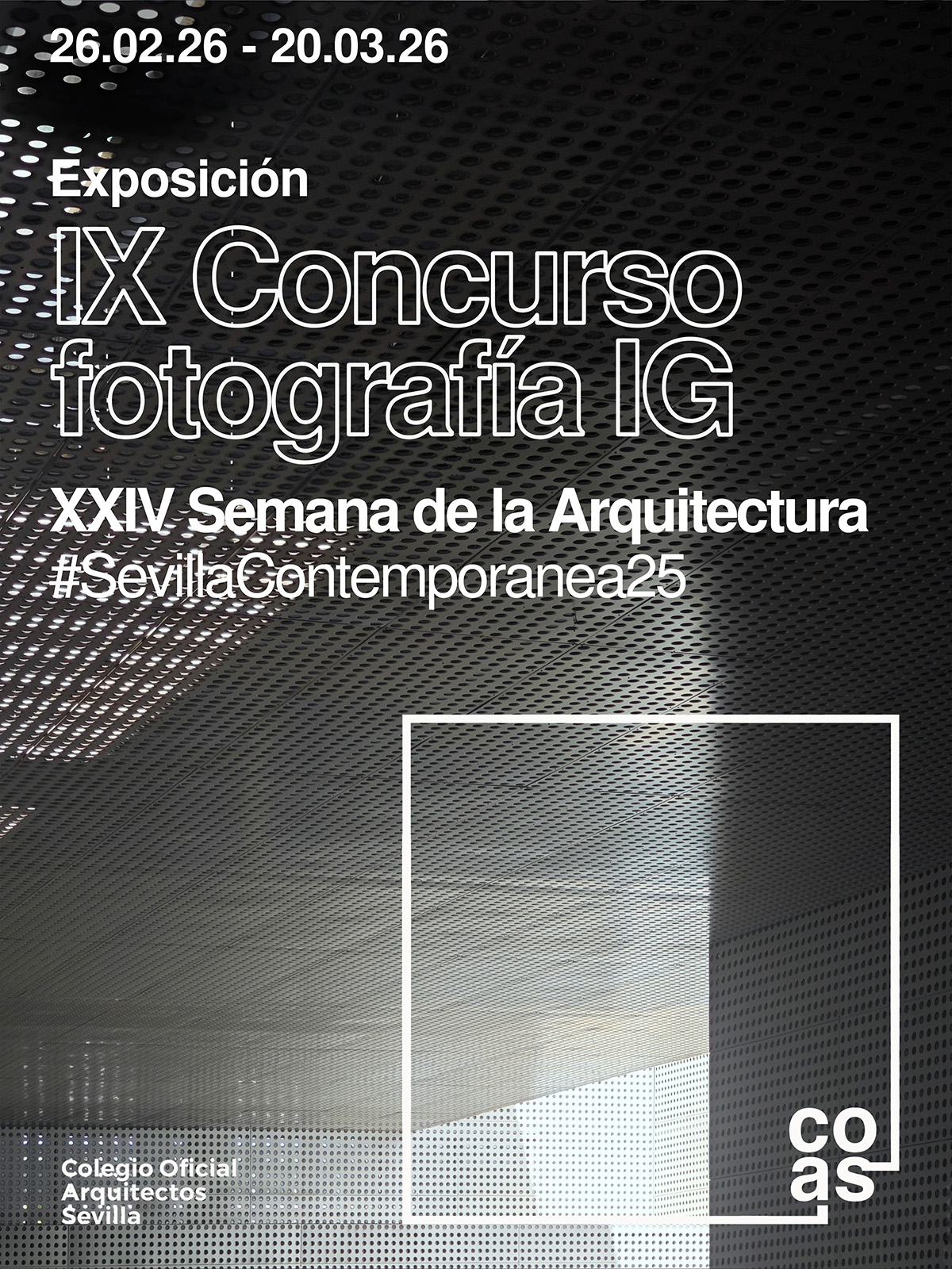 El próximo jueves 26 de febrero, a las 19:30 h., os esperamos en la inauguración de la exposición de fotografías del IX Concurso de Instagram, celebrado en el marco de la XXIV Semana de la Arquitectura bajo el lema #SevillaContemporánea25 con el propósito de buscar esa mirada creativa y personal sobre la arquitectura más reciente, la realizada en el primer cuarto de este siglo XXI en Sevilla y su provincia.