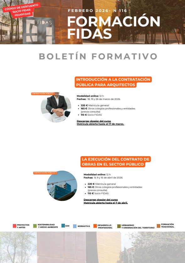 Los títulos con plazo abierto de matriculación son los siguientes: Introducción a la contratación pública para arquitectos y La ejecución del contrato de obras en el sector público