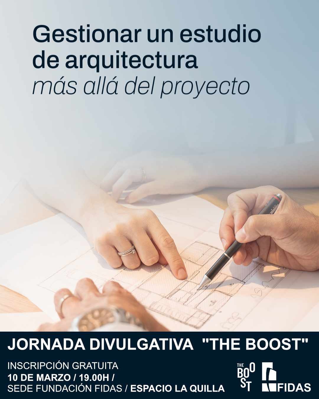 La Fundación FIDAS acogerá el próximo martes 10 de marzo, a las 19 horas, la jornada divulgativa “The Boost”, bajo el título “Gestionar un estudio de arquitectura más allá del proyecto”.