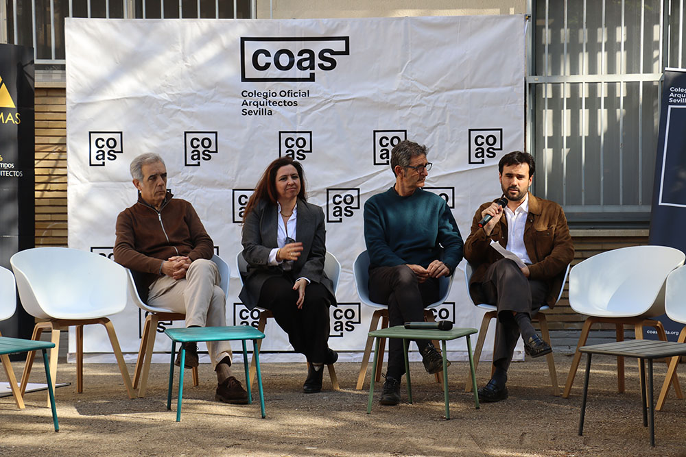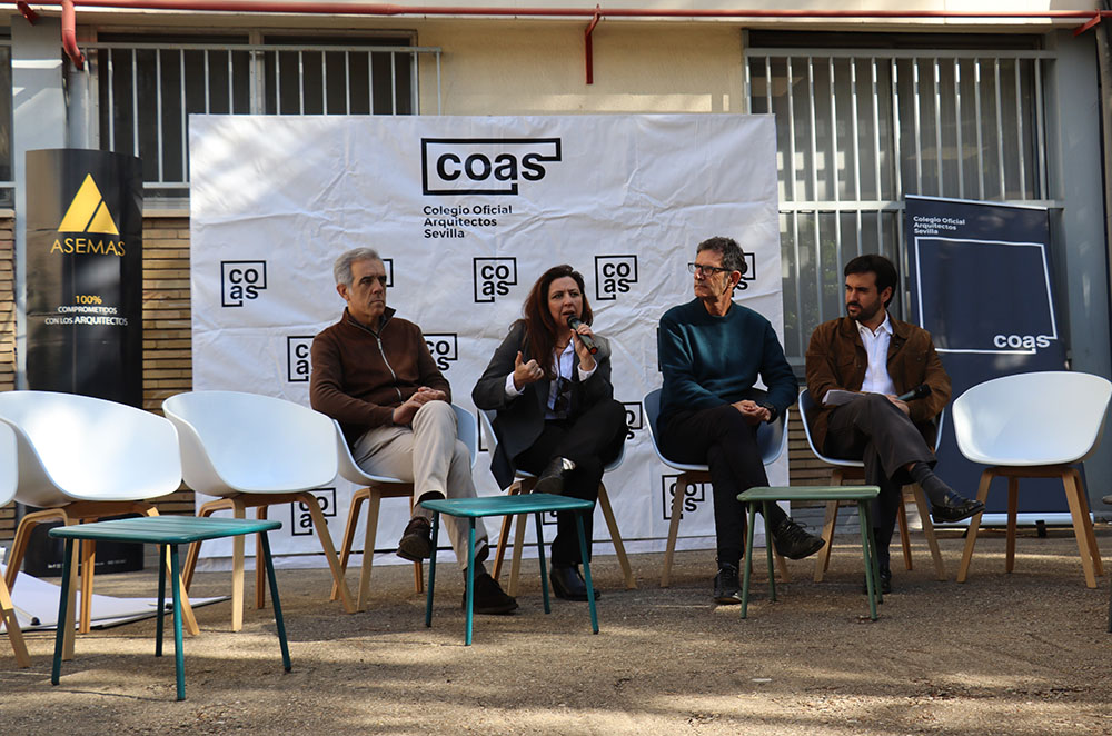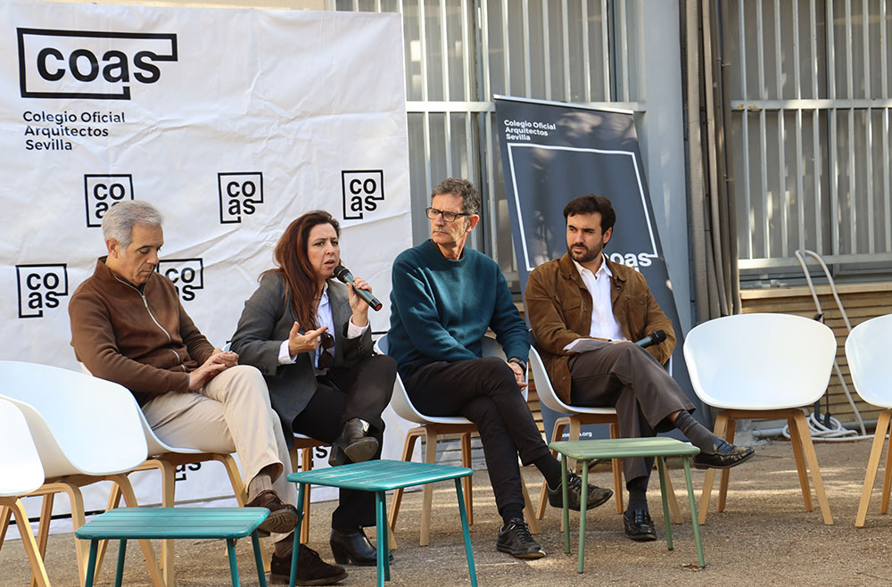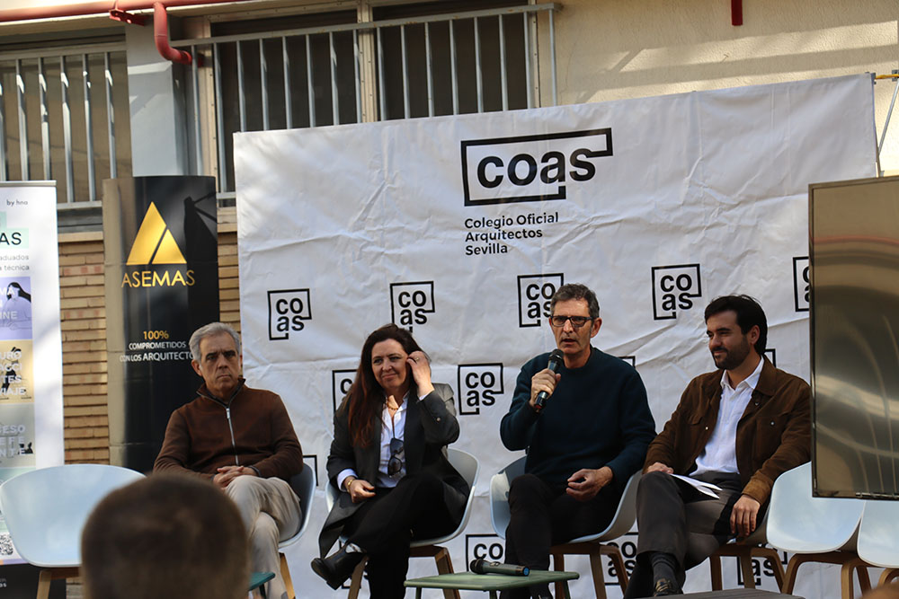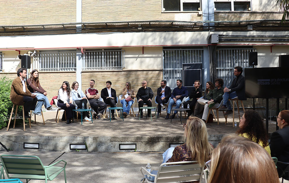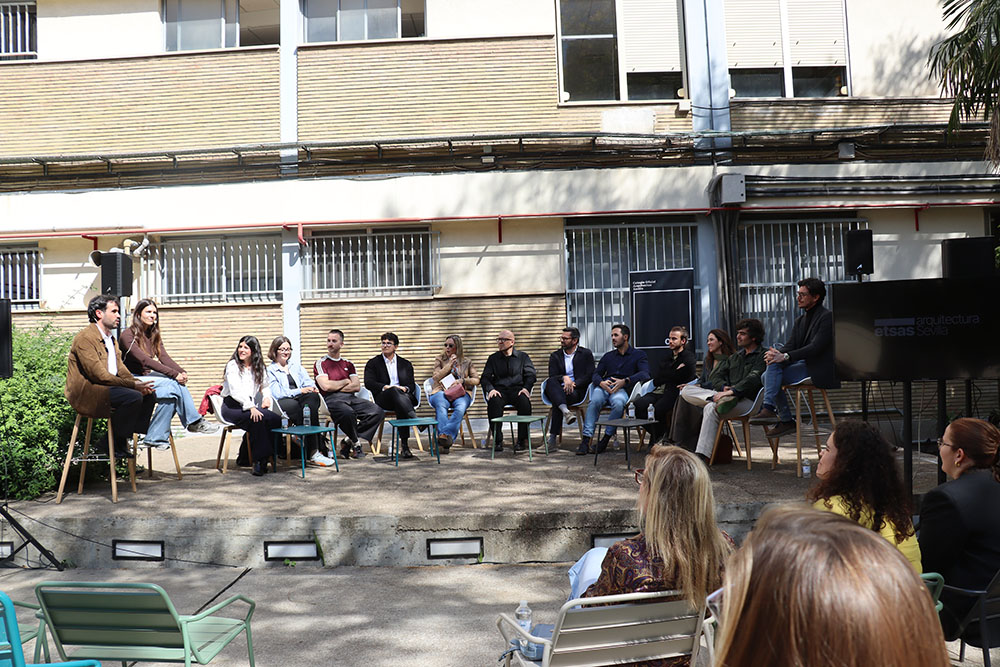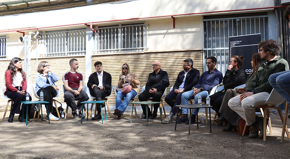Esta mesa ha contado con la participación de representantes de los grupos de jóvenes arquitectos de los Colegios de Arquitectos de Andalucía y de la Agrupación de Jóvenes Arquitectos de Sevilla, entre ellos María Navarro (Paradigma, Sevilla–Extremadura); Pilar Barranco (arquitecta de la administración, Granada); Marina Hernández y Rafael Calero (Che Arquitectura, Cádiz); Sergio Díaz y Juan Manuel Caldero (Palera Arquitectos, Almería); Antonio Lara Morcillo (Amasce Coop., Córdoba); Teresa y José Emilio Rodríguez Miró (Buró Miró, Huelva); José Jódar Llinas (Ask Arquitectura e Investigación, Jaén); Manuel Baena (Málaga), y Juan Moreno (Granada), quienes compartieron sus experiencias y diferentes formas de ejercicio profesional, desde el ejercicio libre de la profesión hasta el trabajo en administraciones públicas, empresas o estudios de arquitectura.