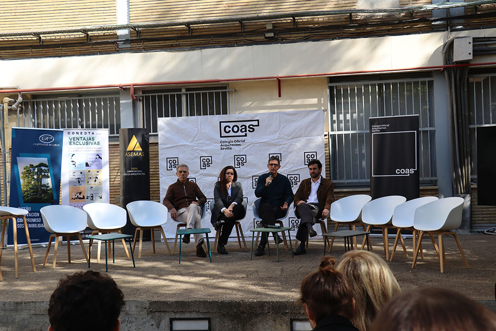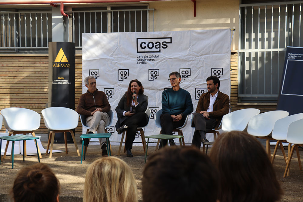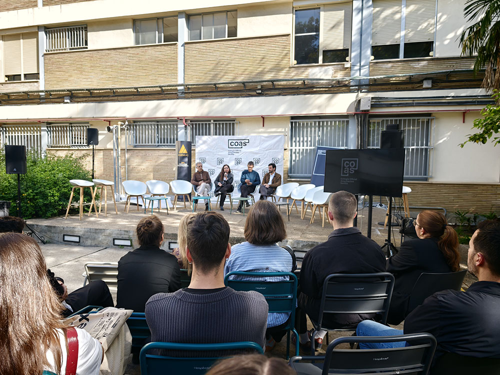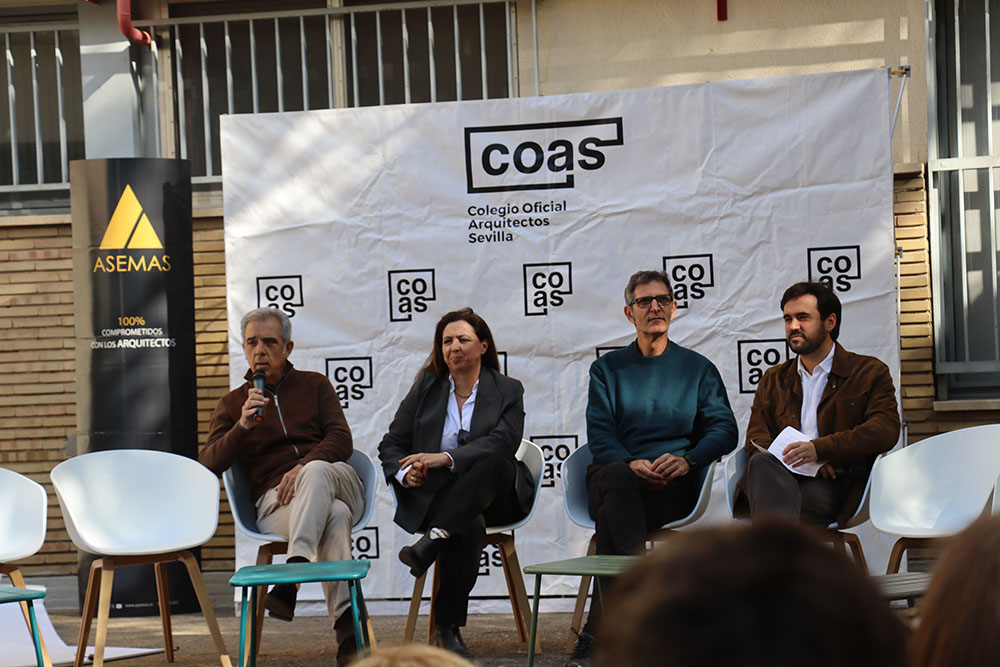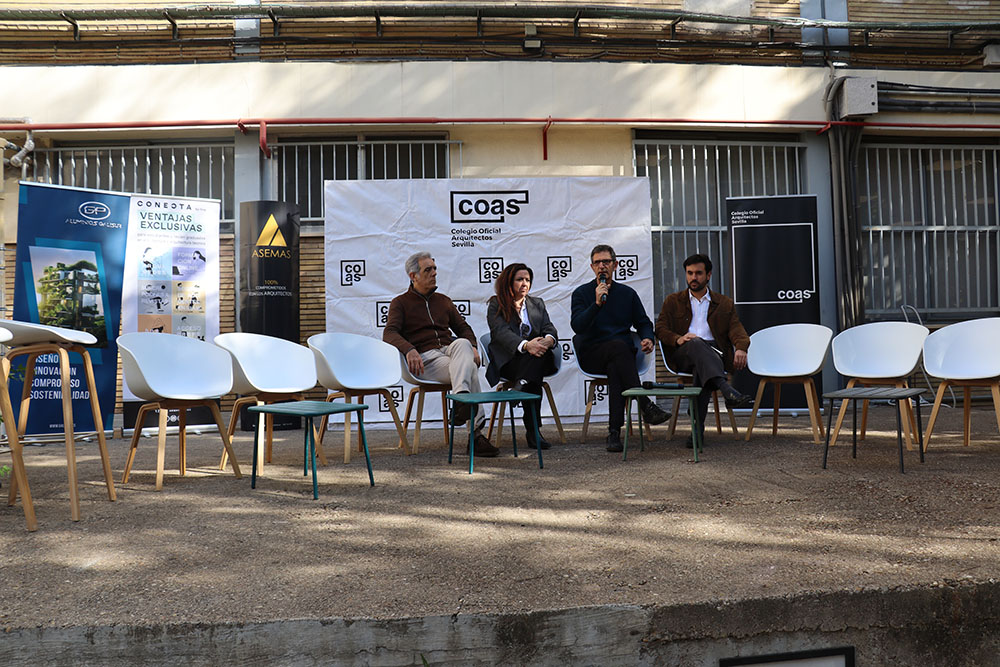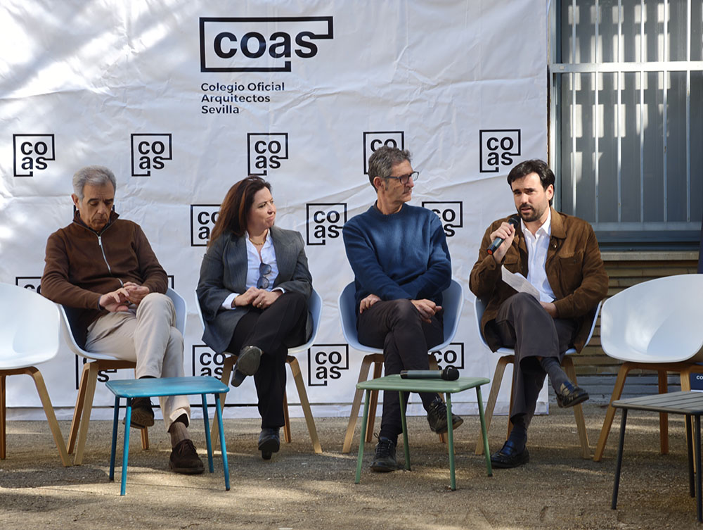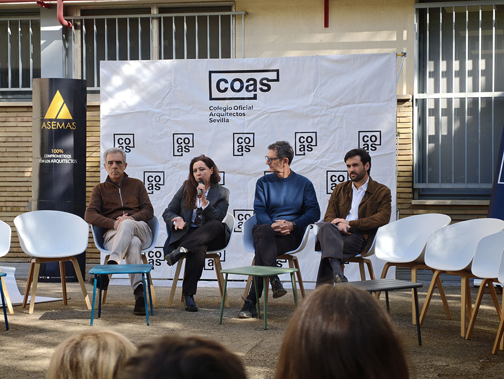 Esta mesa ha contado con la participación de representantes de los grupos de jóvenes arquitectos de los Colegios de Arquitectos de Andalucía y de la Agrupación de Jóvenes Arquitectos de Sevilla, entre ellos María Navarro (Paradigma, Sevilla–Extremadura); Pilar Barranco (arquitecta de la administración, Granada); Marina Hernández y Rafael Calero (Che Arquitectura, Cádiz); Sergio Díaz y Juan Manuel Caldero (Palera Arquitectos, Almería); Antonio Lara Morcillo (Amasce Coop., Córdoba); Teresa y José Emilio Rodríguez Miró (Buró Miró, Huelva); José Jódar Llinas (Ask Arquitectura e Investigación, Jaén); Manuel Baena (Málaga), y Juan Moreno (Granada), quienes compartieron sus experiencias y diferentes formas de ejercicio profesional, desde el ejercicio libre de la profesión hasta el trabajo en administraciones públicas, empresas o estudios de arquitectura.