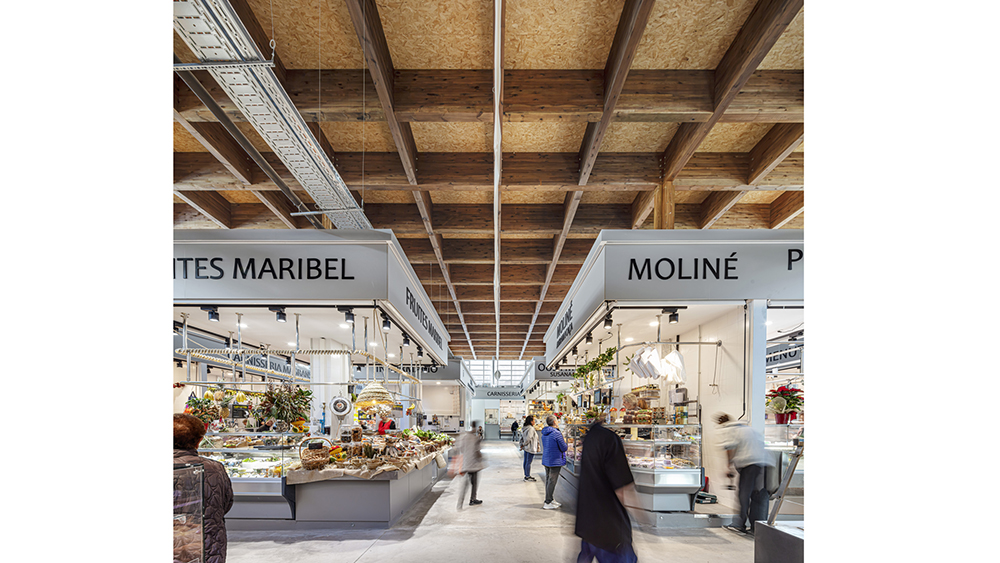 El proyecto planea acoger provisionalmente el programa funcional del Mercado de Horta a través de la combinación de una infraestructura permanente y un programa temporal. La estructura principal actúa como elemento generador de espacio y cubierta del mercado a partir de una retícula de pilares y jácenas de madera que permiten una buena adaptación del programa. La zona comercial se formaliza con una altura de 5 metros, mientras que la zona logística se resuelve con una altura más baja para reducir el impacto paisajístico. Se potencia la iluminación natural gracias a los cerramientos acristalados perimetrales que permiten una ventilación cruzada y una renovación natural del aire.