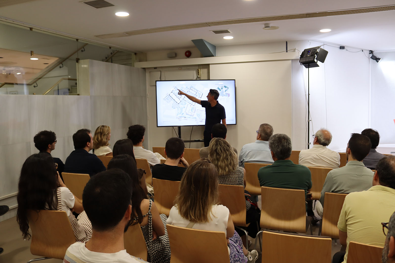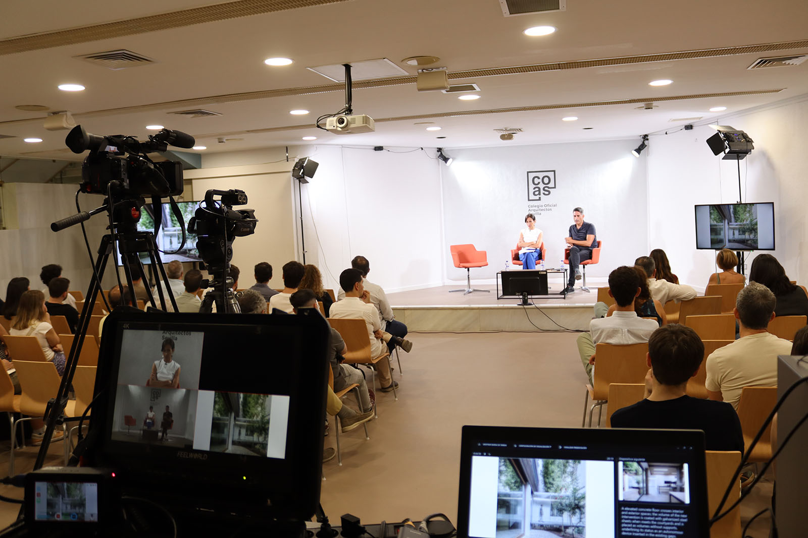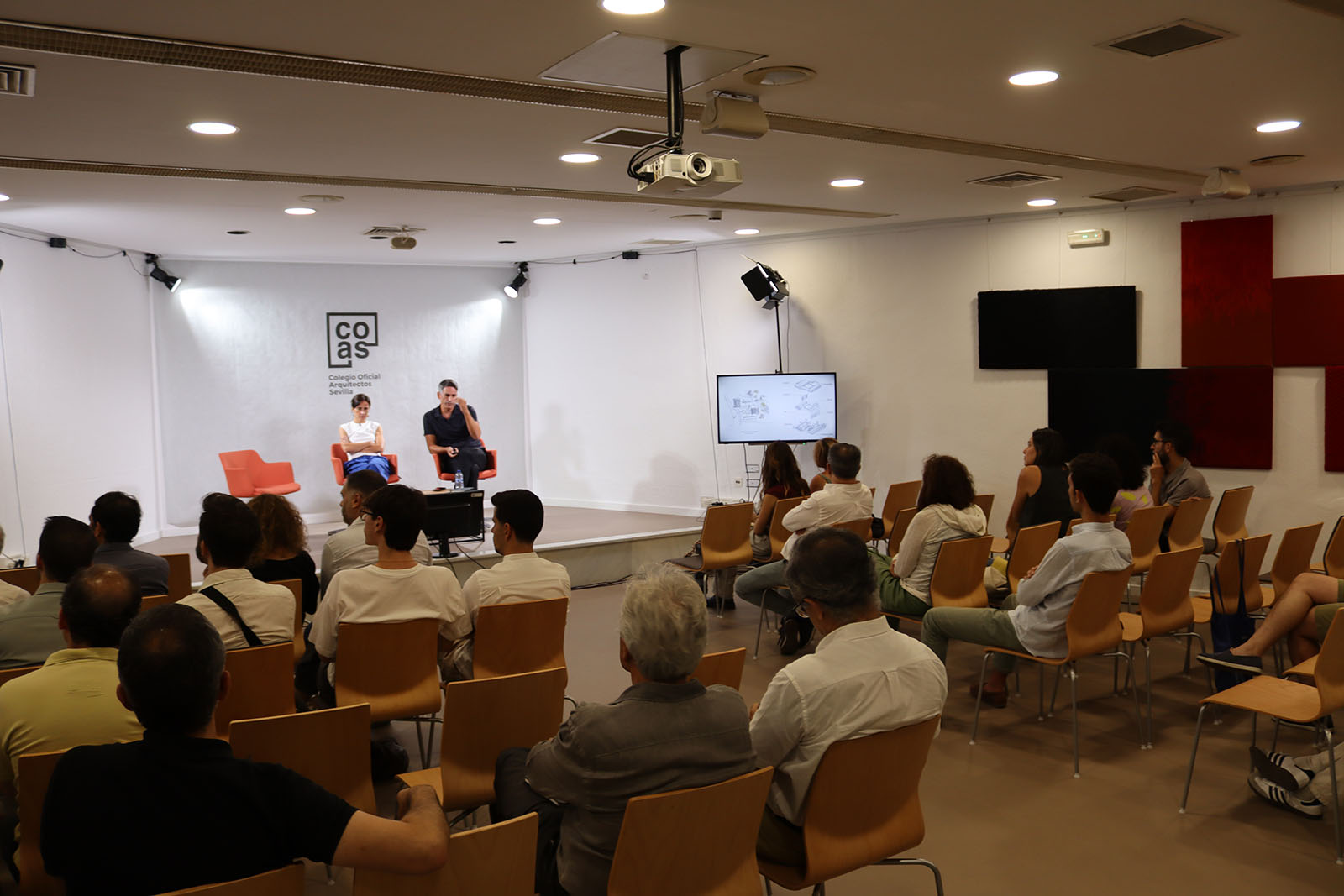 Juanma García Nieto, vocal de Actividades, fue el encargado de dar la bienvenida y presentar a Sol89, “un estudio desde donde intentan conciliar la docencia, investigación y profesión. Su trabajo abarca desde la pequeña escala local hasta proyectos internacionales en los que la exploración de los espacios intermedios, los ritos y el carácter público de la arquitectura están siempre presentes”.
