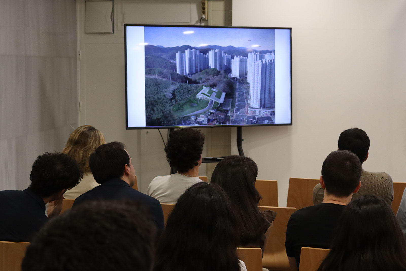 Finalmente, compartieron algunos de sus trabajos internacionales desarrollados en Corea del Sur, como: el Centro del Bienestar en Paju, la Biblioteca Metropolitana de Jinju (2022–2025), la Marina y Centro de Negocios del Puerto de Busán (2021).